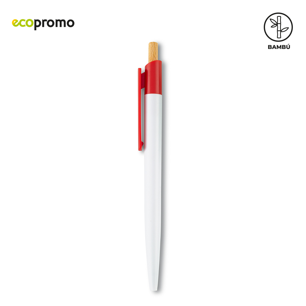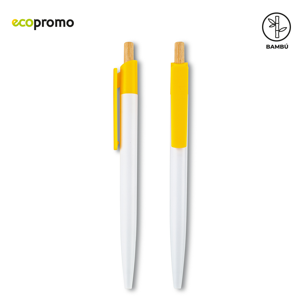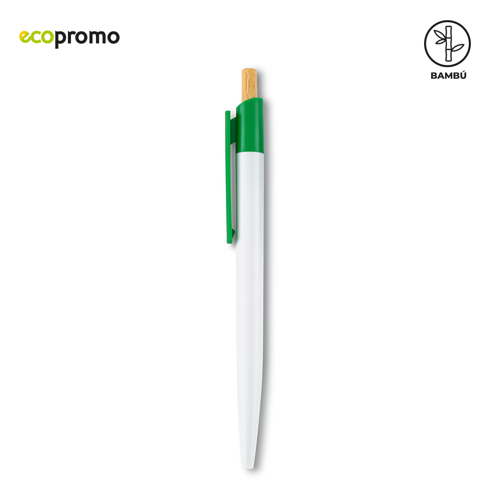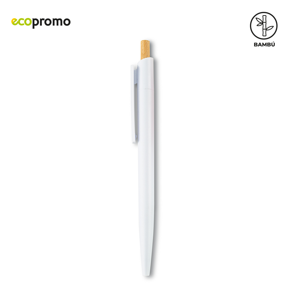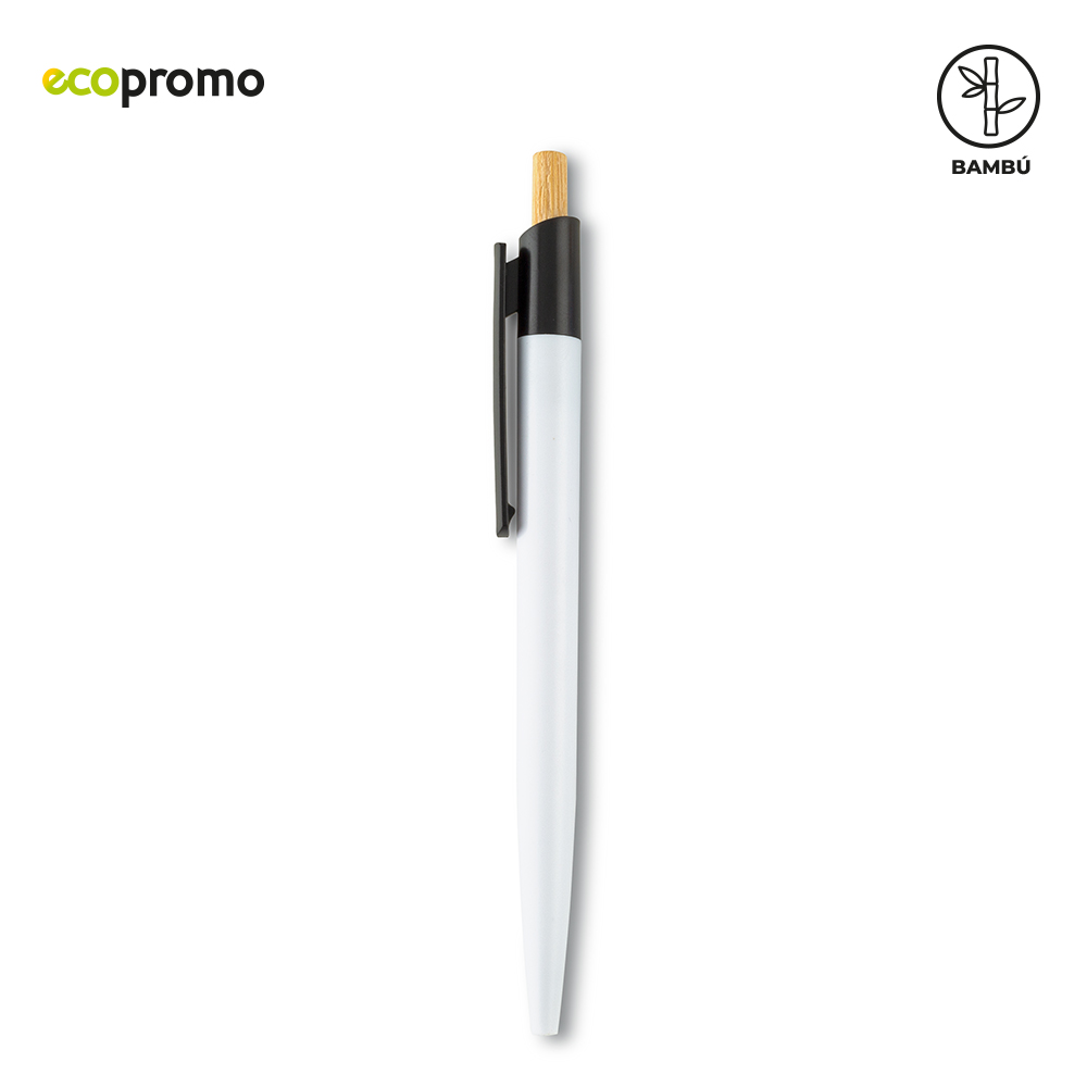 Bolígrafo plástico con mecanismo push y partes en bambú.
