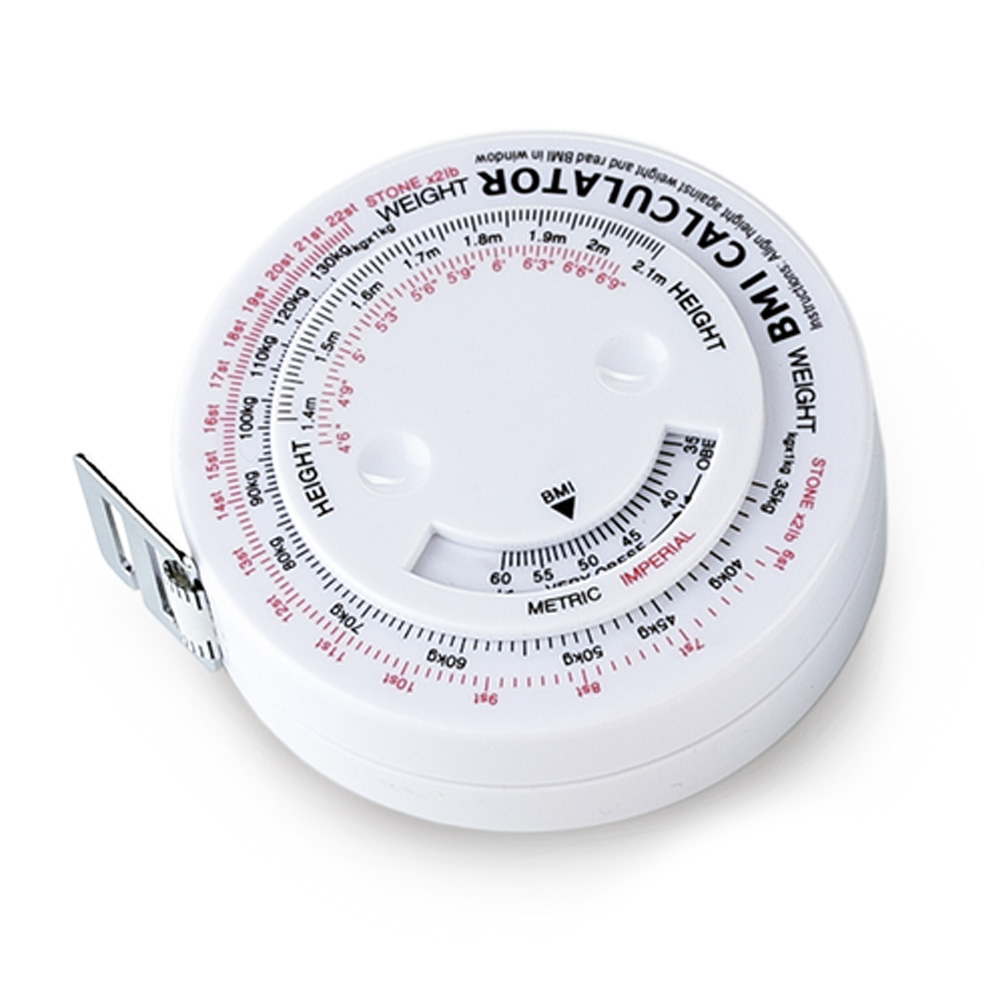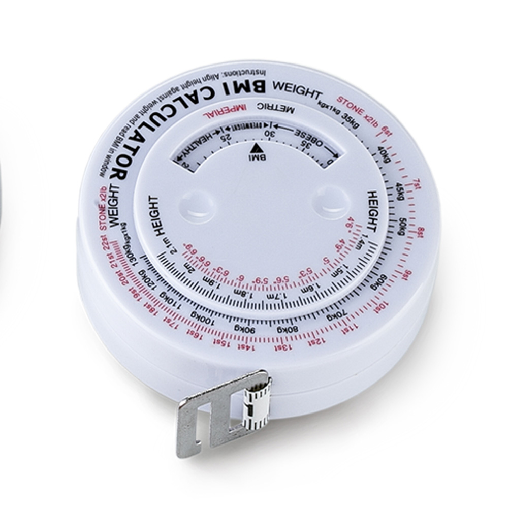 Metro en plastico para calcular el indice de masa muscular con boton para recoger la cinta