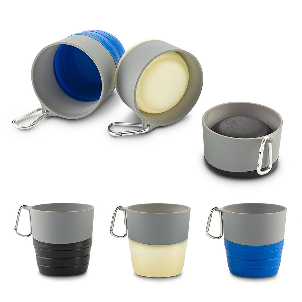 Vaso plegable en polipropileno de trigo con capacidad de 220ml. Incluye carabinero.