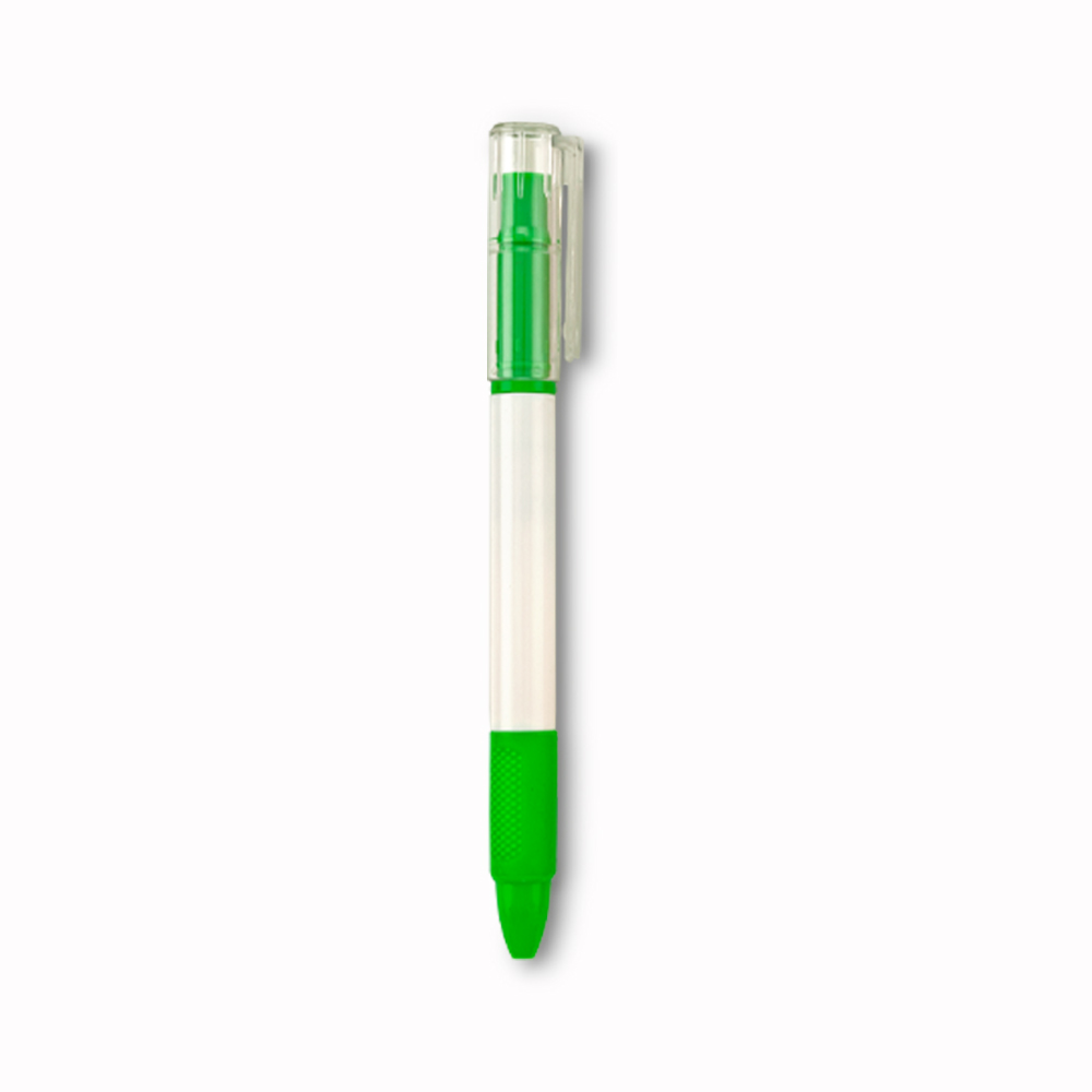 Bolígrafo plástico con resaltador de tinta. Mecanismo twist.