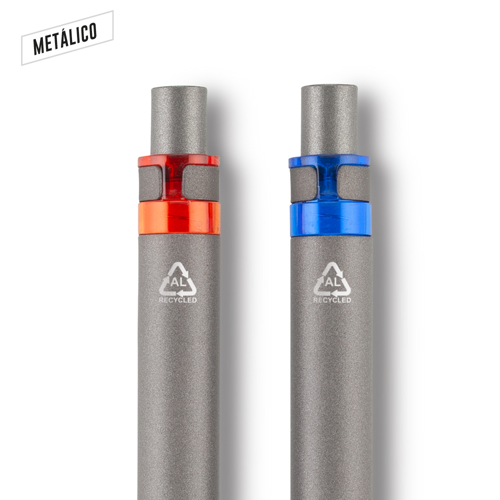 Boligrafo elaborado en aluminio post-consumo Clip metalico Mecanismo push