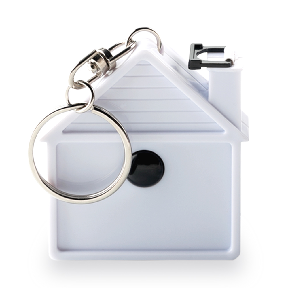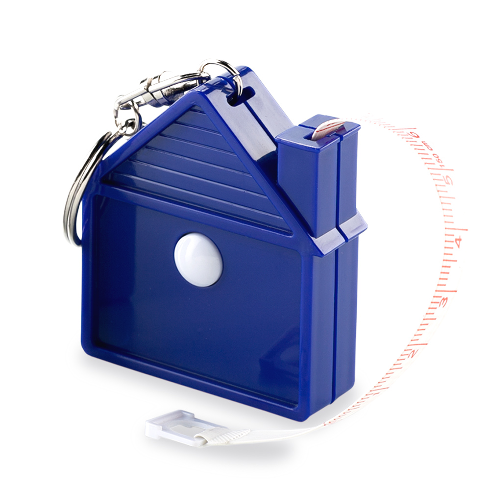 Llavero metro de 1,50 m en plastico con boton de presion para recoger la cinta