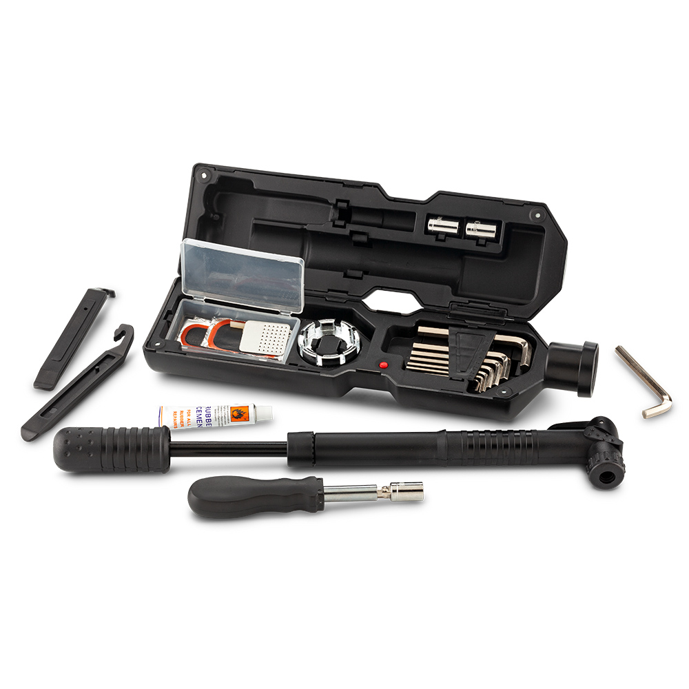 Set de herramientas de 30 piezas para bicicleta en estuche plastico con linterna 3 x AAA (baterias no incluidas)
