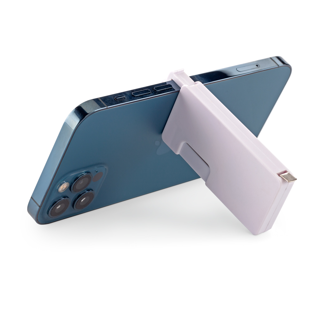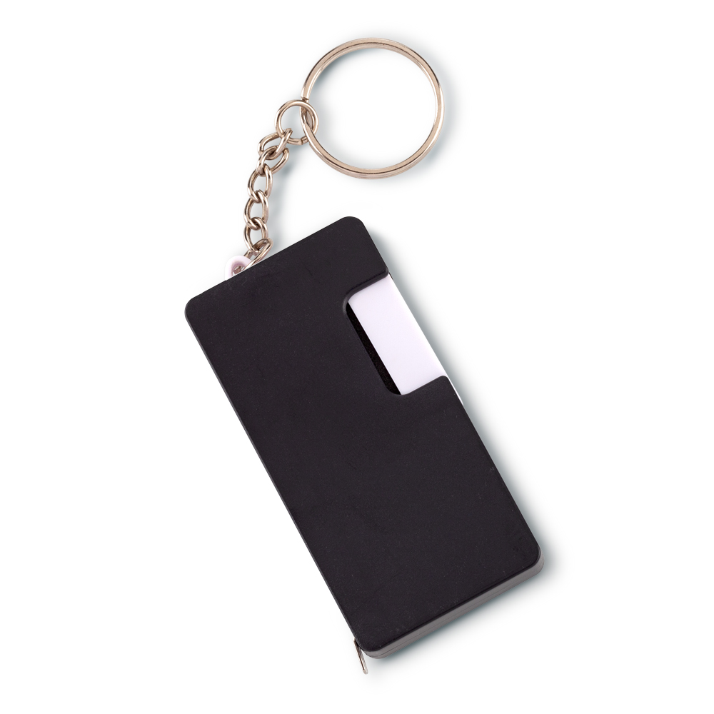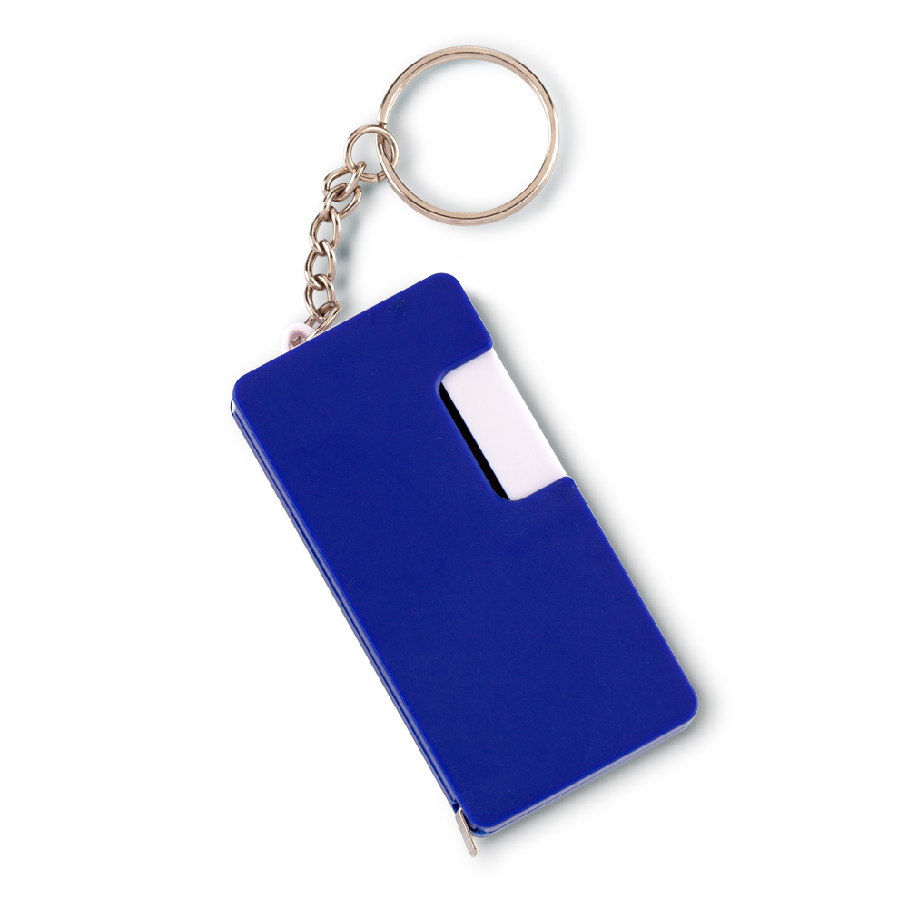 Llavero plástico con metro de 1 mt, soporte para celular y limpia pantallas.