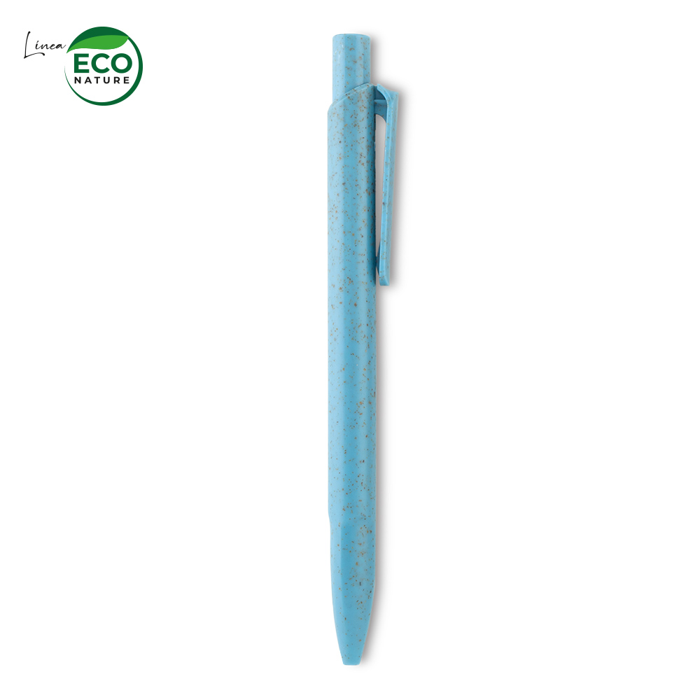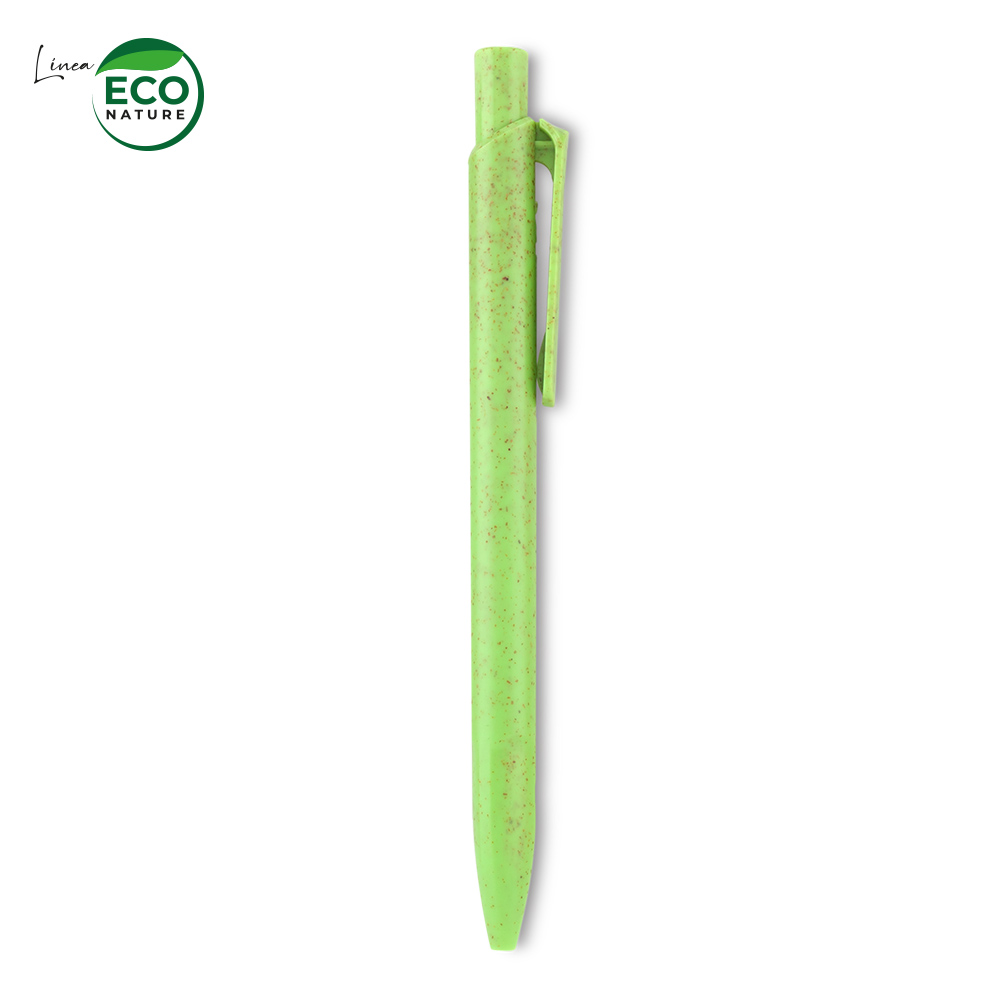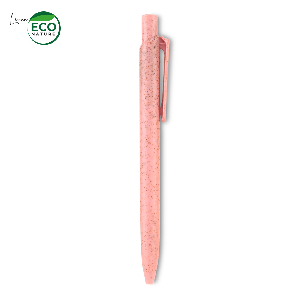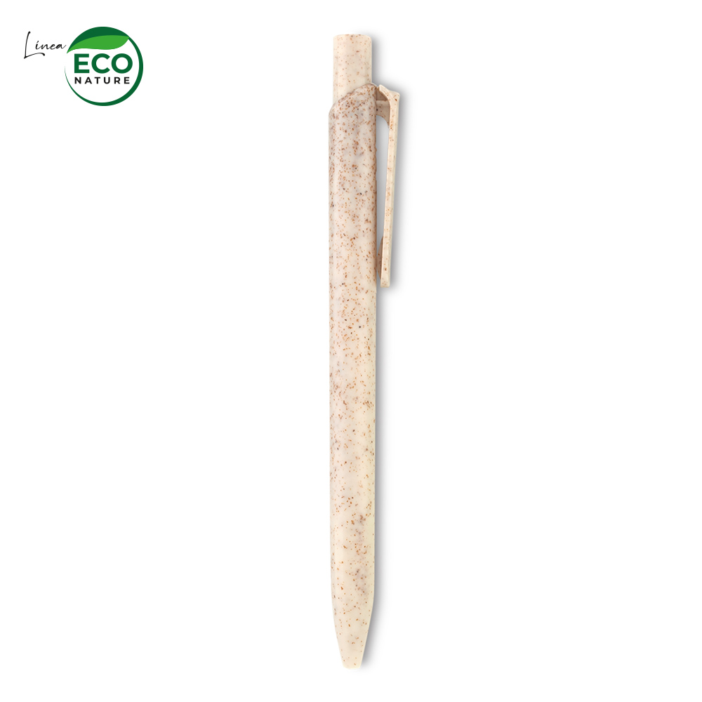 Boligrafo plastico Mecanismo push Mezcla con material ecologico en fibra de trigo (50%-60% aprox) El porcentaje de material ecologico tiene un promedio de biodegradabilidad de 2-3 anos despues del fin de su vida util