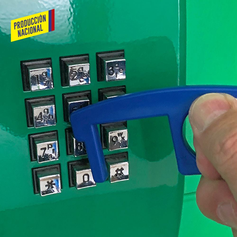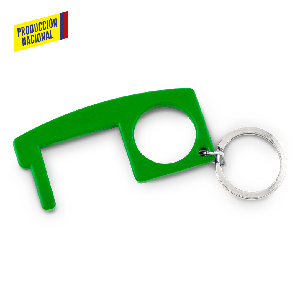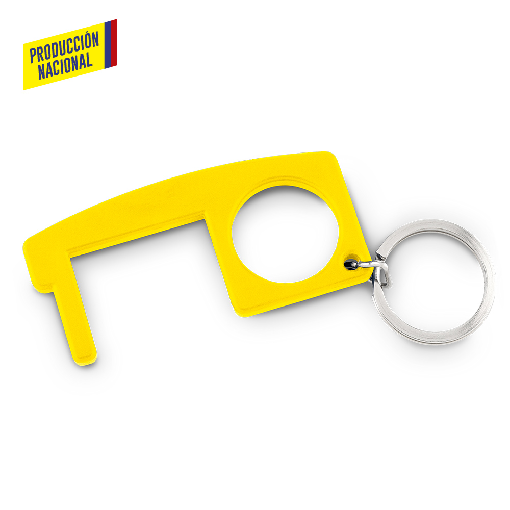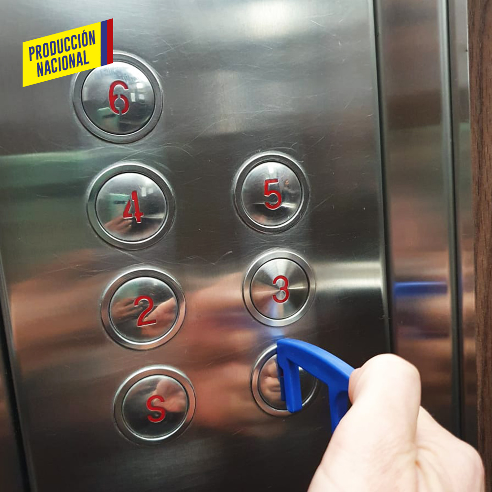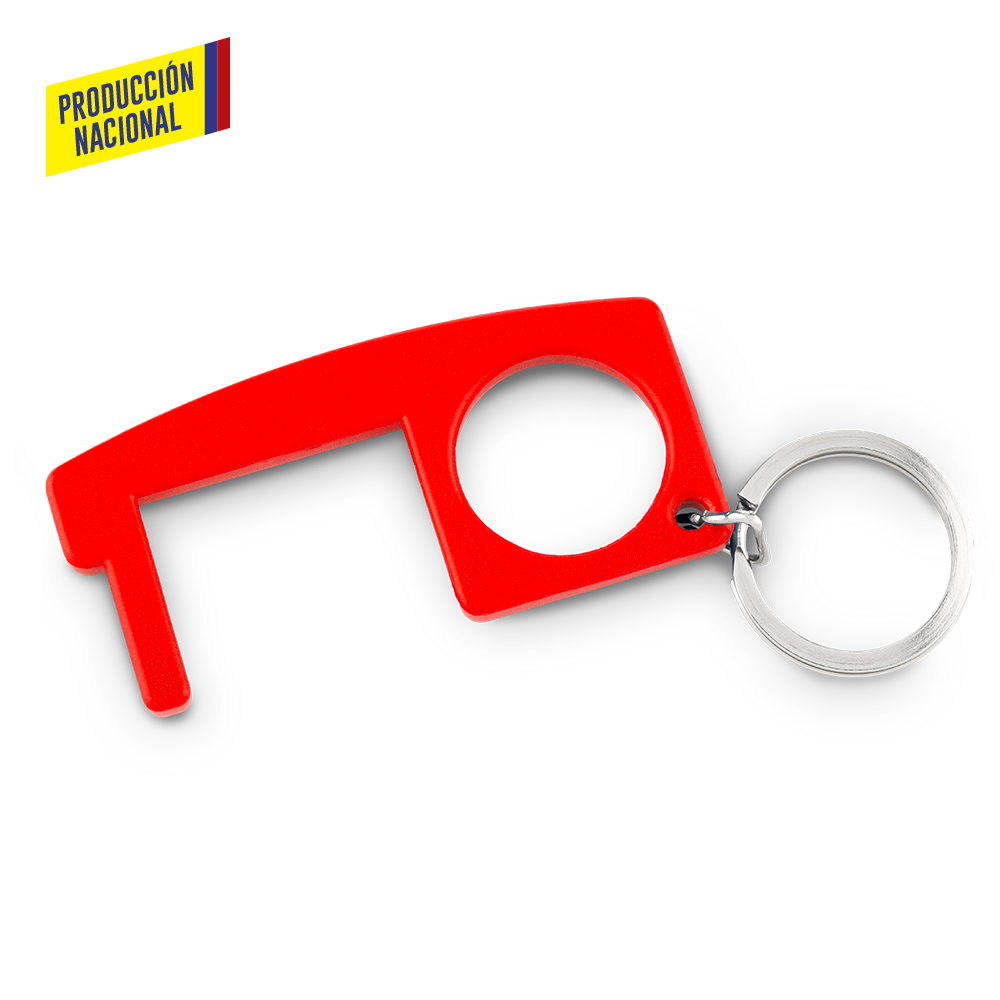 Este llavero ha sido elaborado con plastico ABS resistente y completamente lavable Diseno ergonomico que permite facilmente abrir puertas presionar botones halar palancas Reduce la contaminacion y la exposicion de los dedos a superficies y reduce el area de contacto hasta en 99% Puede usarlo puertas y botones publicos Facil de cargar Limpie despues de cada uso con un elemento desinfectante no abrasivo y seque antes de dos minutos El uso de este elemento no sustituye los protocolos de desinfeccion que deben tener las superficies Empaque bolsa individual Opcional con argolla llavero plana o argolla llavero economica
