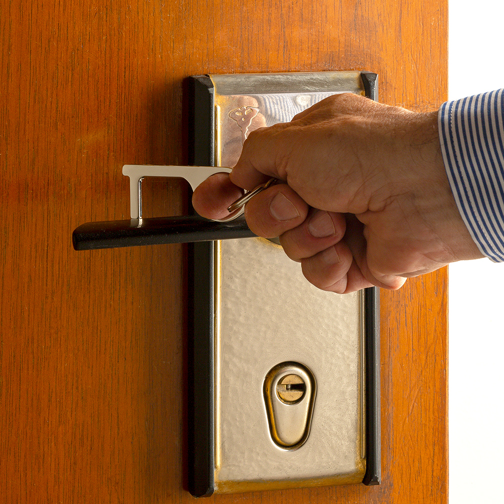 Llavero en Aleacion de Zinc con recubrimiento plateado Diseno ergonomico que permite facilmente abrir puertas presionar botones halar palancas Reduce la contaminacion y la exposicion de los dedos a superficies y reduce el area de contacto hasta en 99% Puede usarlo en pantallas puertas y botones publicos Facil de cargar Apto como stylus en smartphones que no tengan pelicula protectora Empaque caja individual