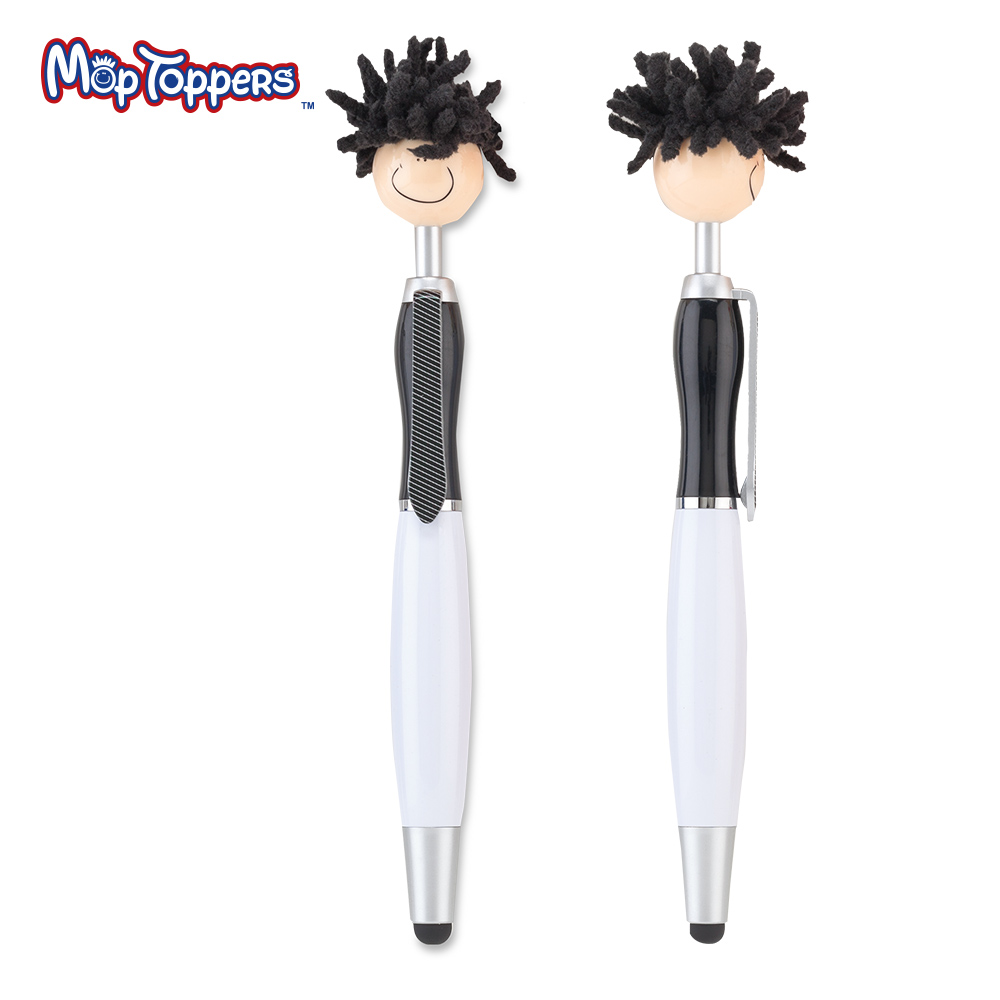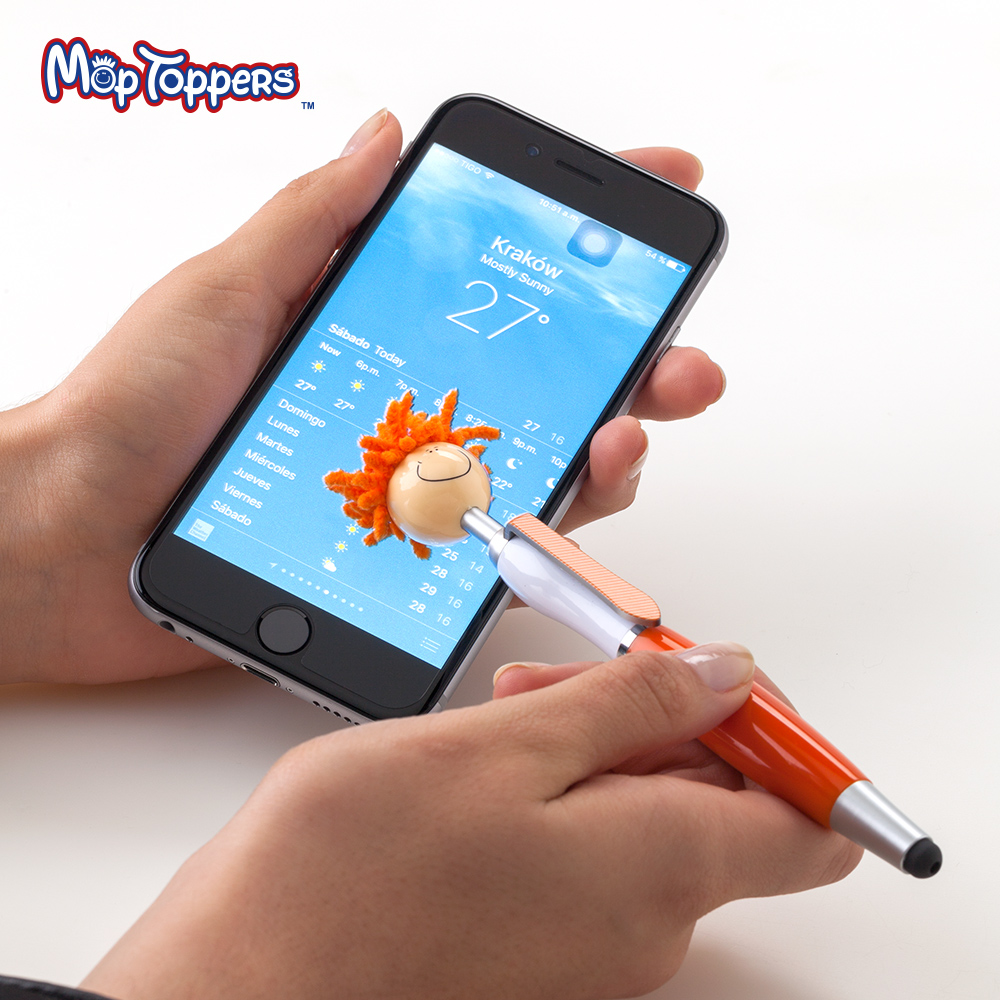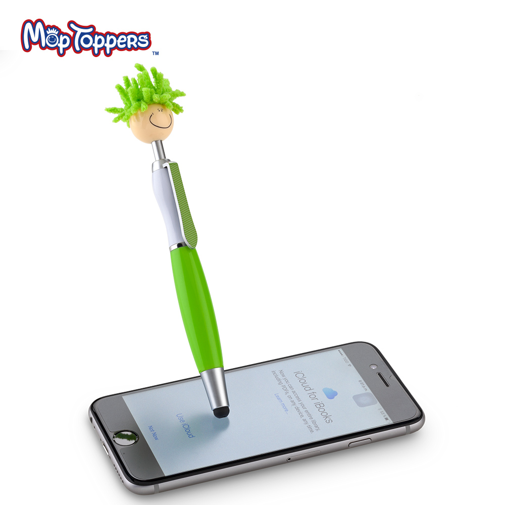 Boligrafo plastico con stylus y cabeza con microfibra para limpiar pantallas
