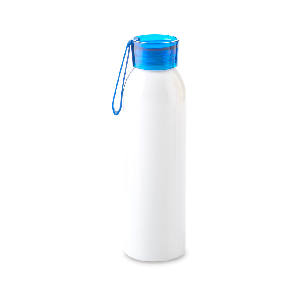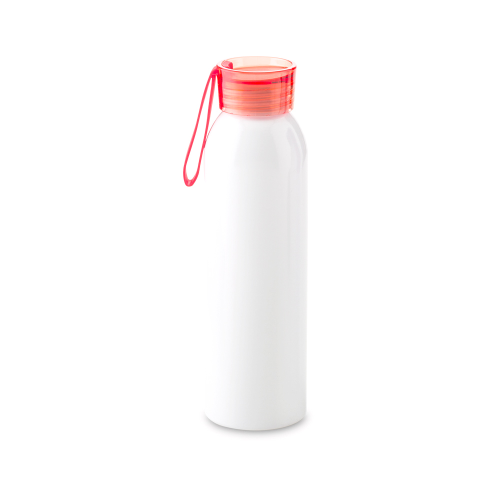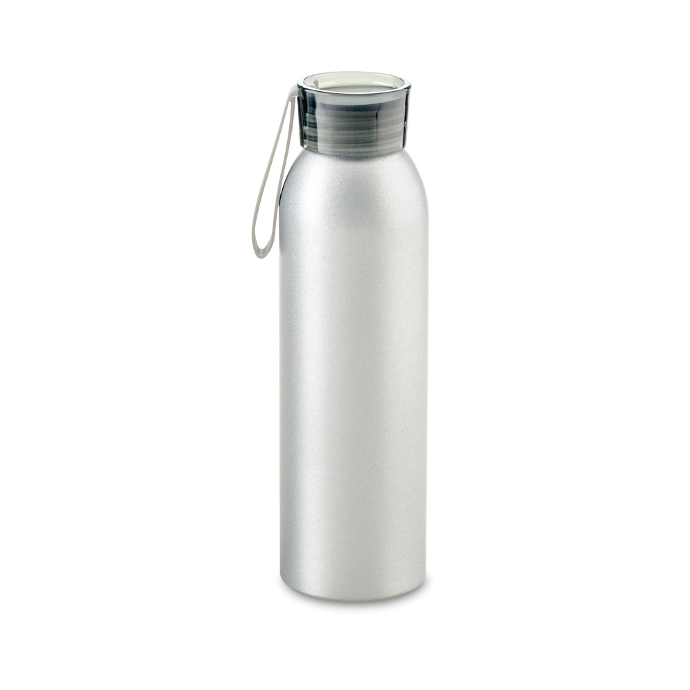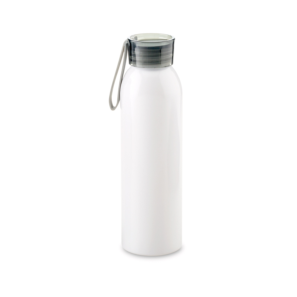 Metalico con tapa plastica translucida y agarradera en caucho No apto para bebidas calientes Color de botella opcional entre blanco y silver Color de tapa a eleccion