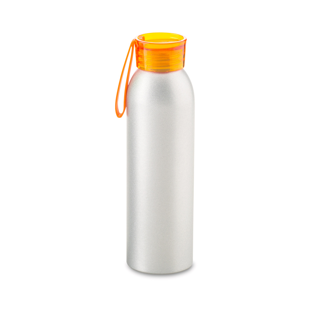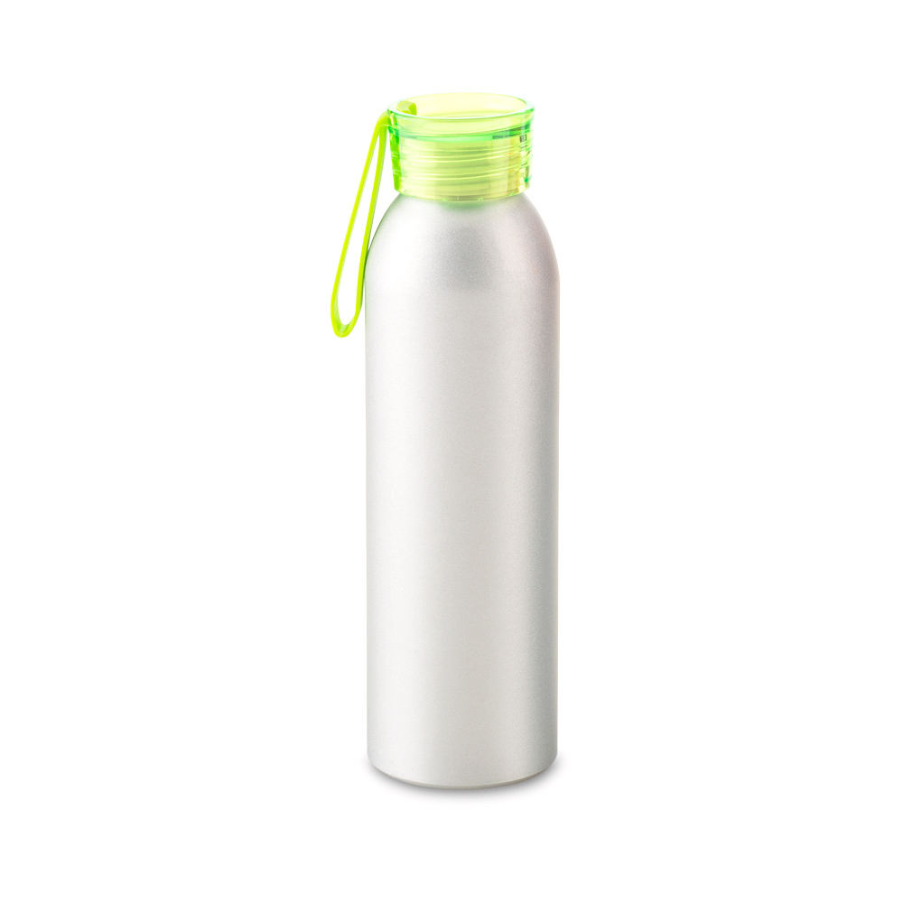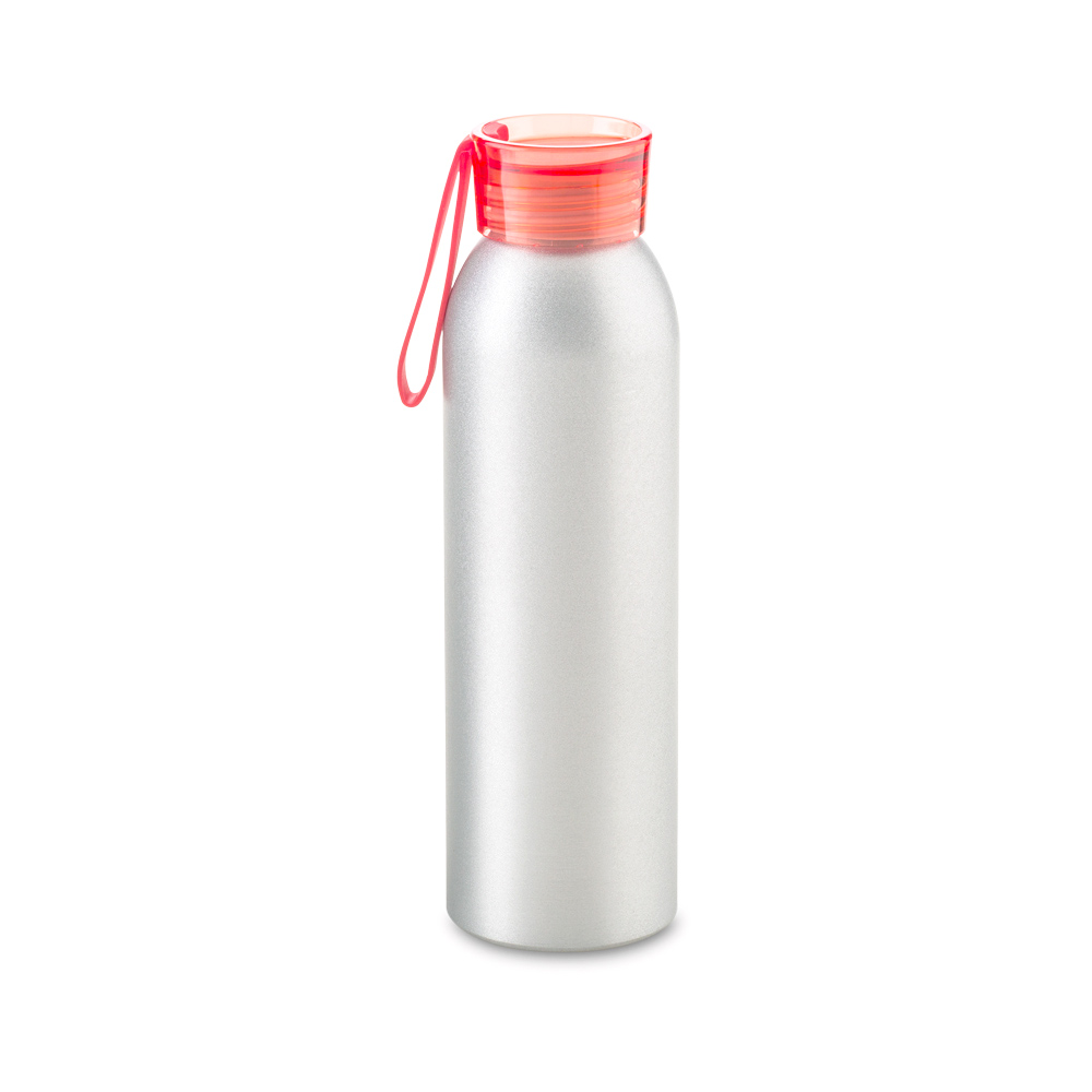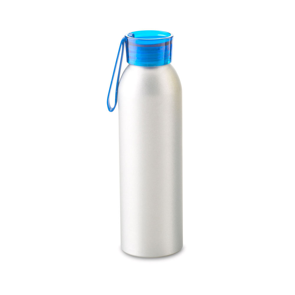 Metalico con tapa plastica translucida y agarradera en caucho No apto para bebidas calientes Color de botella opcional entre blanco y silver Color de tapa a eleccion
