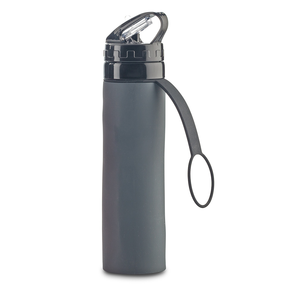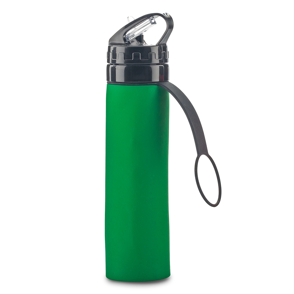Botilito en Silicona Con tapa plastica de rosca chupo y banda para plegar