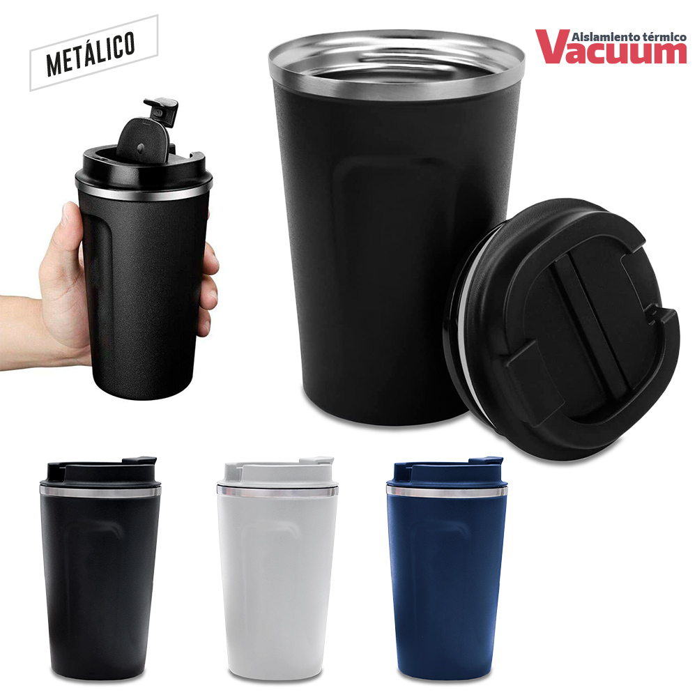Doble pared en acero Inoxidable con aislamiento termico que mantiene la bebida fria o caliente hasta 6h aprox (puede variar dependiendo condiciones climaticas) Tapa pestana y grip de silicona para mejor agarre Empaque caja individual