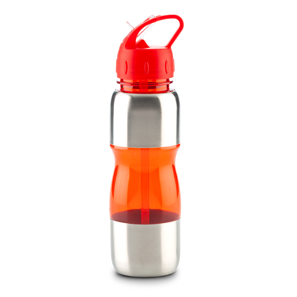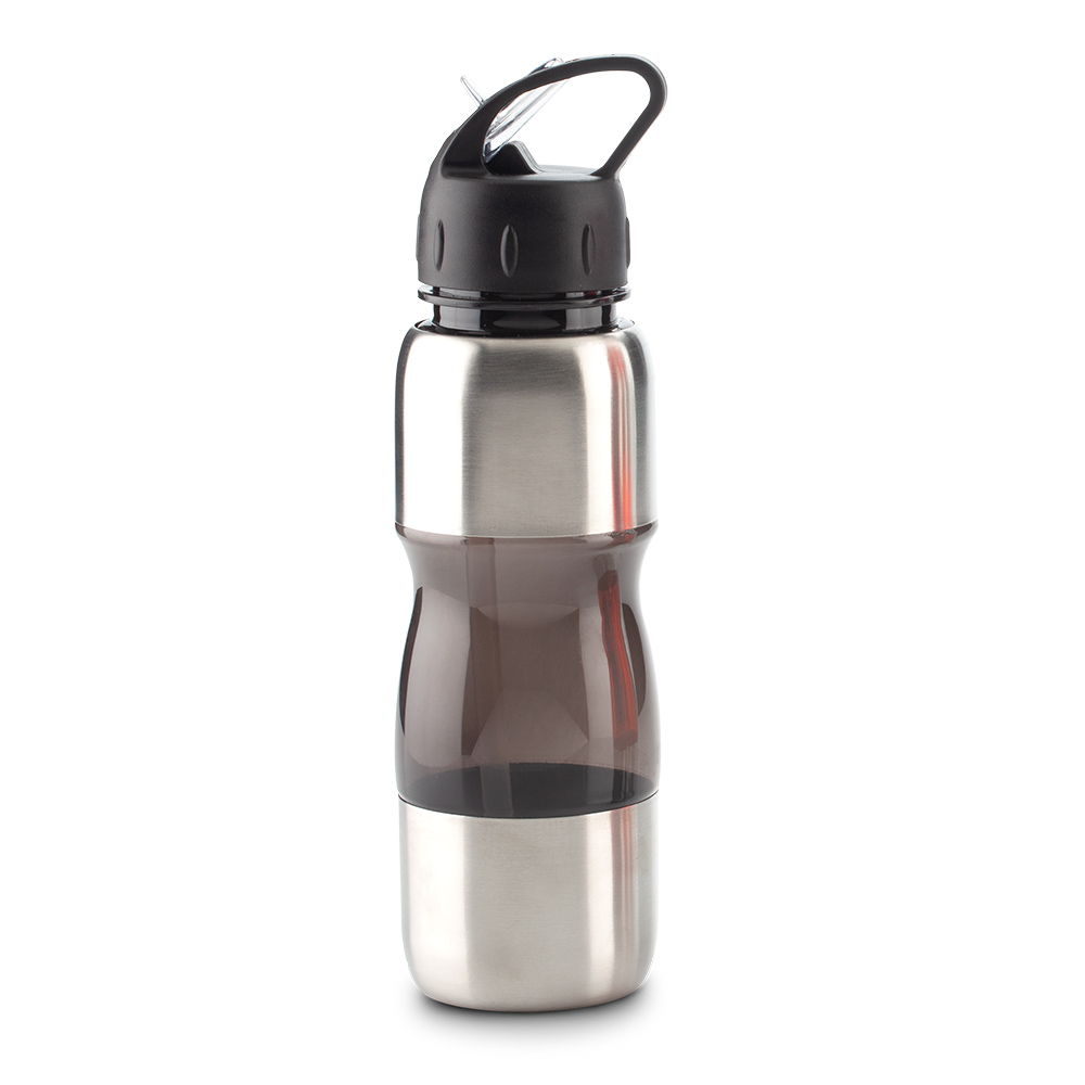 Botilito plastico en AS (acrilico estireno) con partes en acero inoxidable Tapa con pitillo