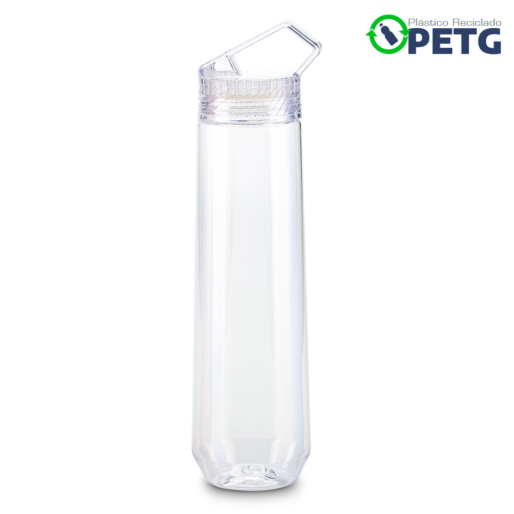 Elaborado en plastico reciclado PETG Material de alta transparencia mayor firmeza y durabilidad libre de BPA resistente al desgaste e impactos menores y reciclable Mantiene liquidos tibios hasta 60C Tapa de rosca