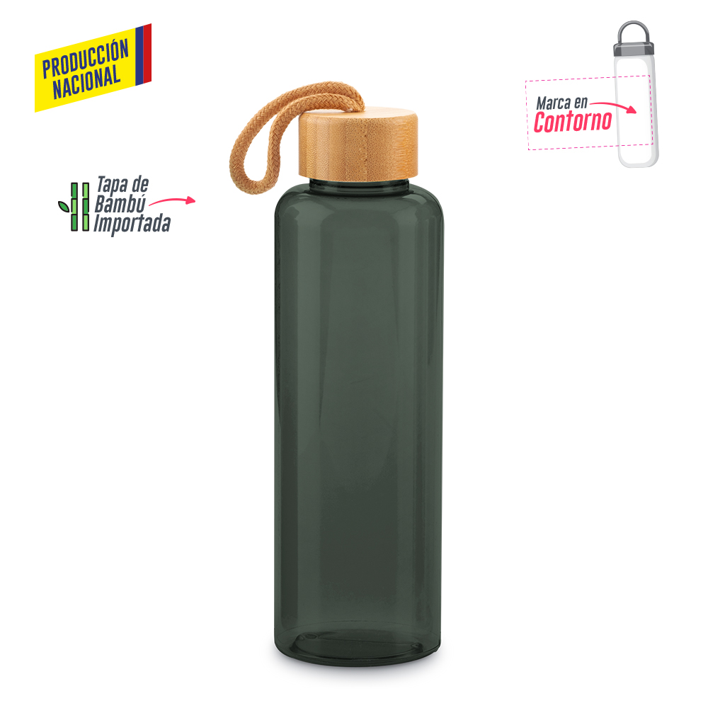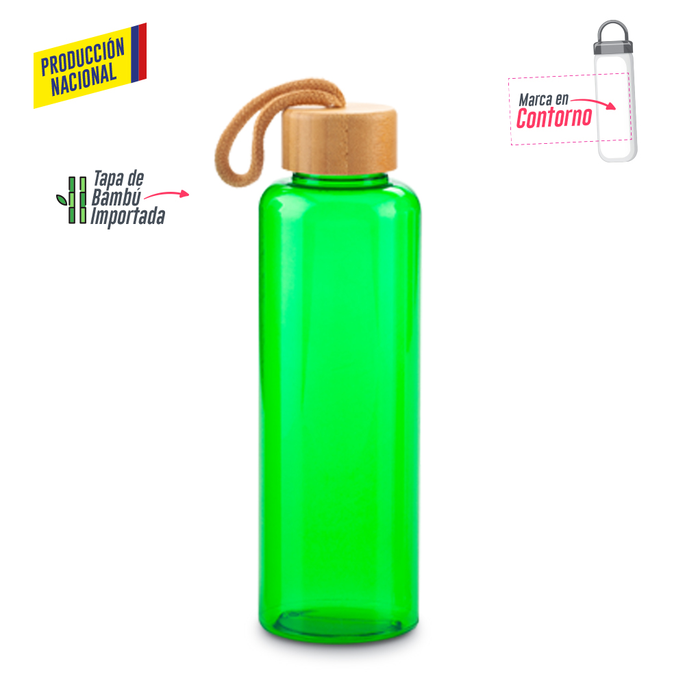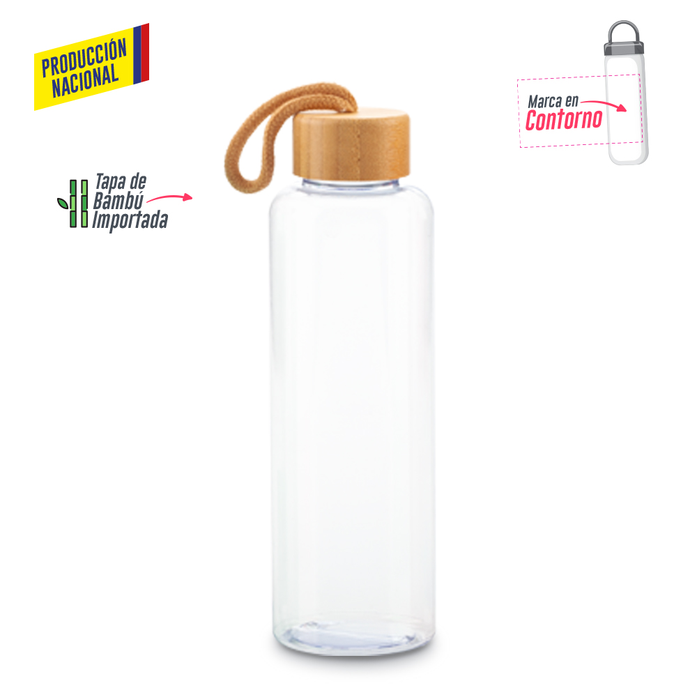 Botilito en PVC atóxico, con tapa en Bambú. Producción Nacional.