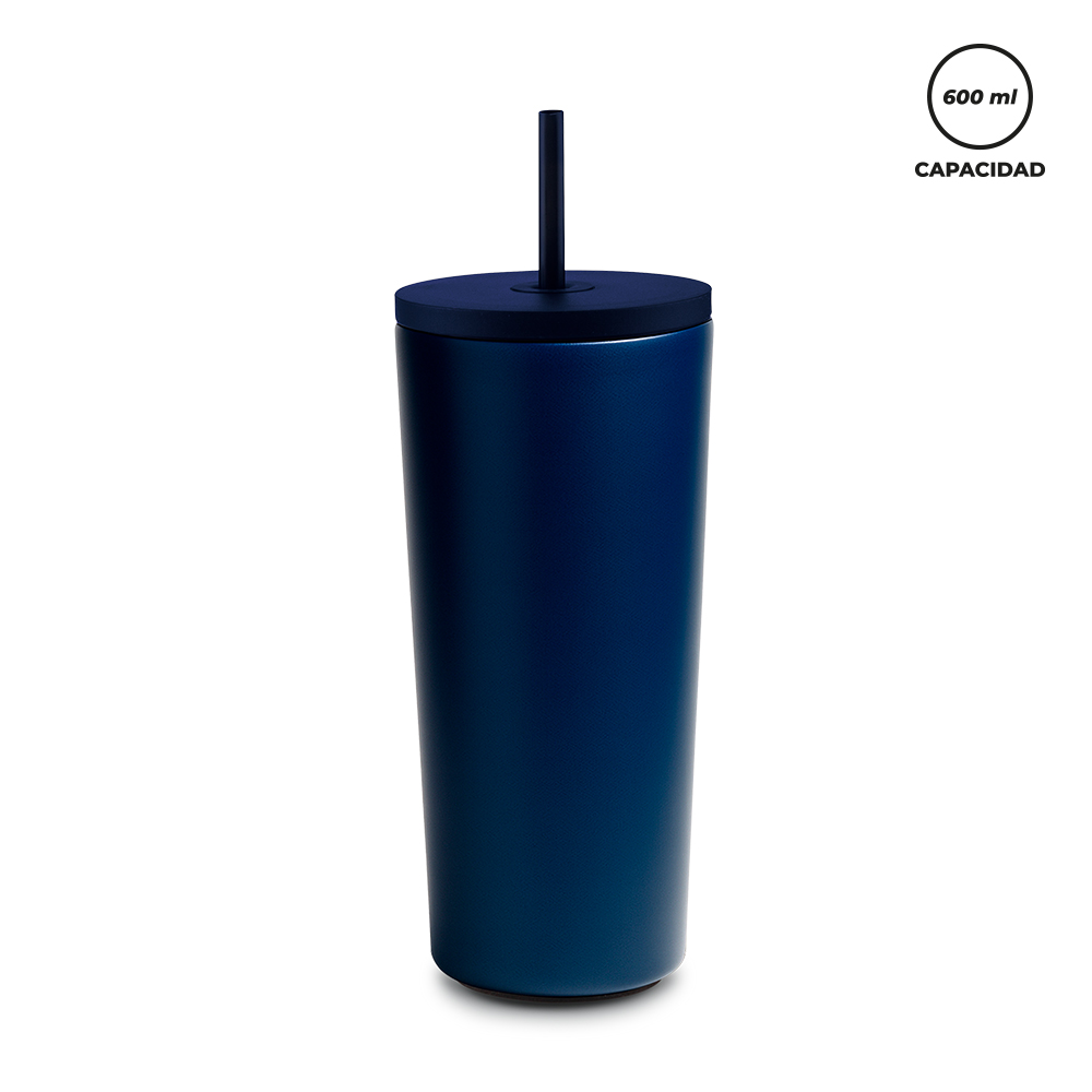 Mug metálico doble pared vacuum en acero inoxidable. Tapa rosca con pitillo. Empaque caja individual.