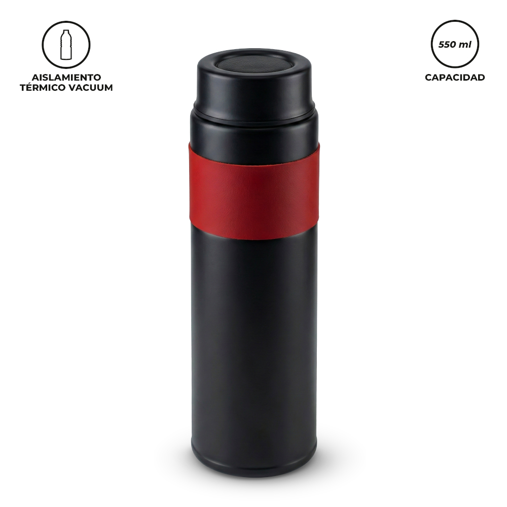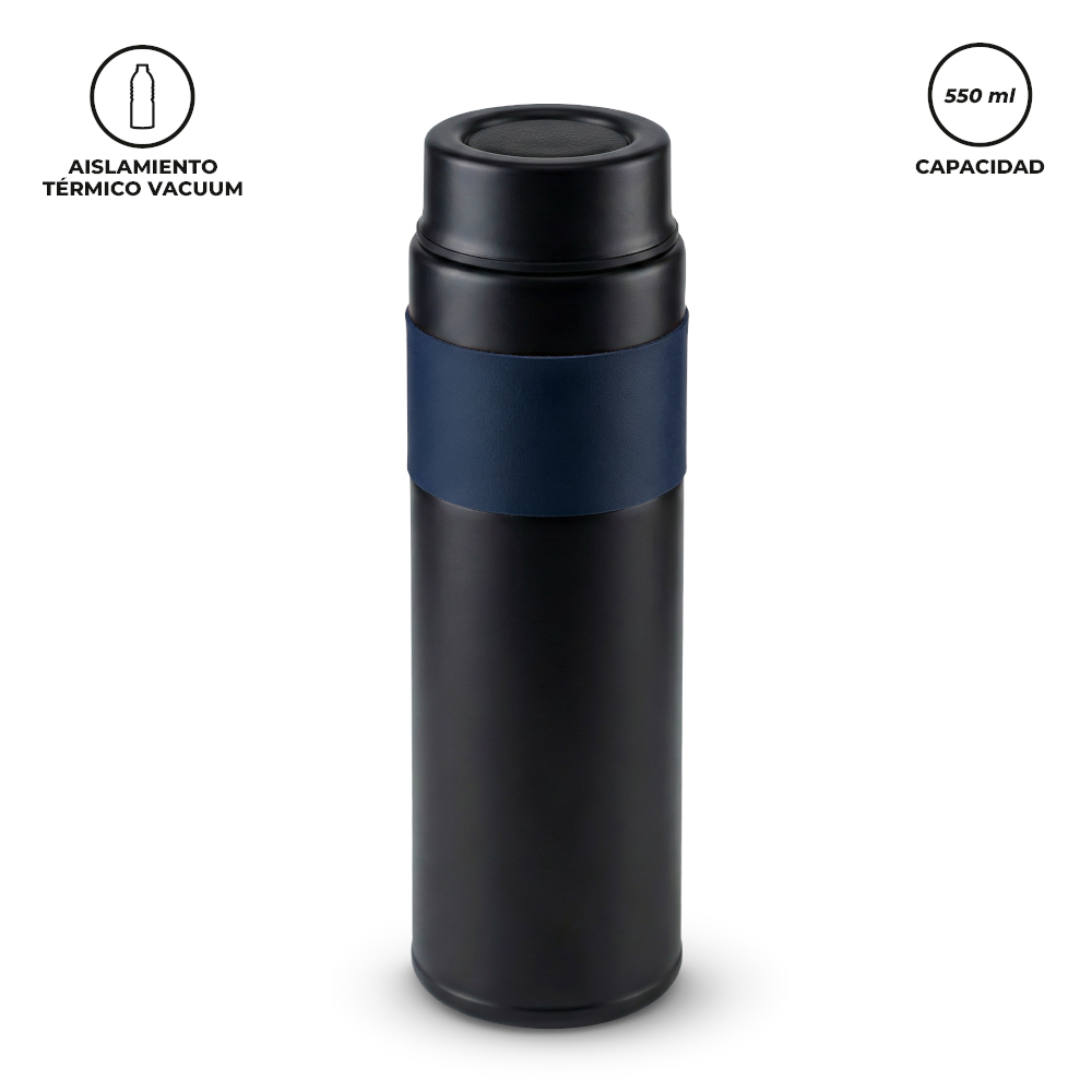 Botilito doble pared vacuum en acero inoxidable, con aislamiento térmico que mantiene la bebida fría o caliente hasta 6h aprox (puede variar dependiendo de las condiciones climáticas), con tapa rosca. Empaque caja individual.