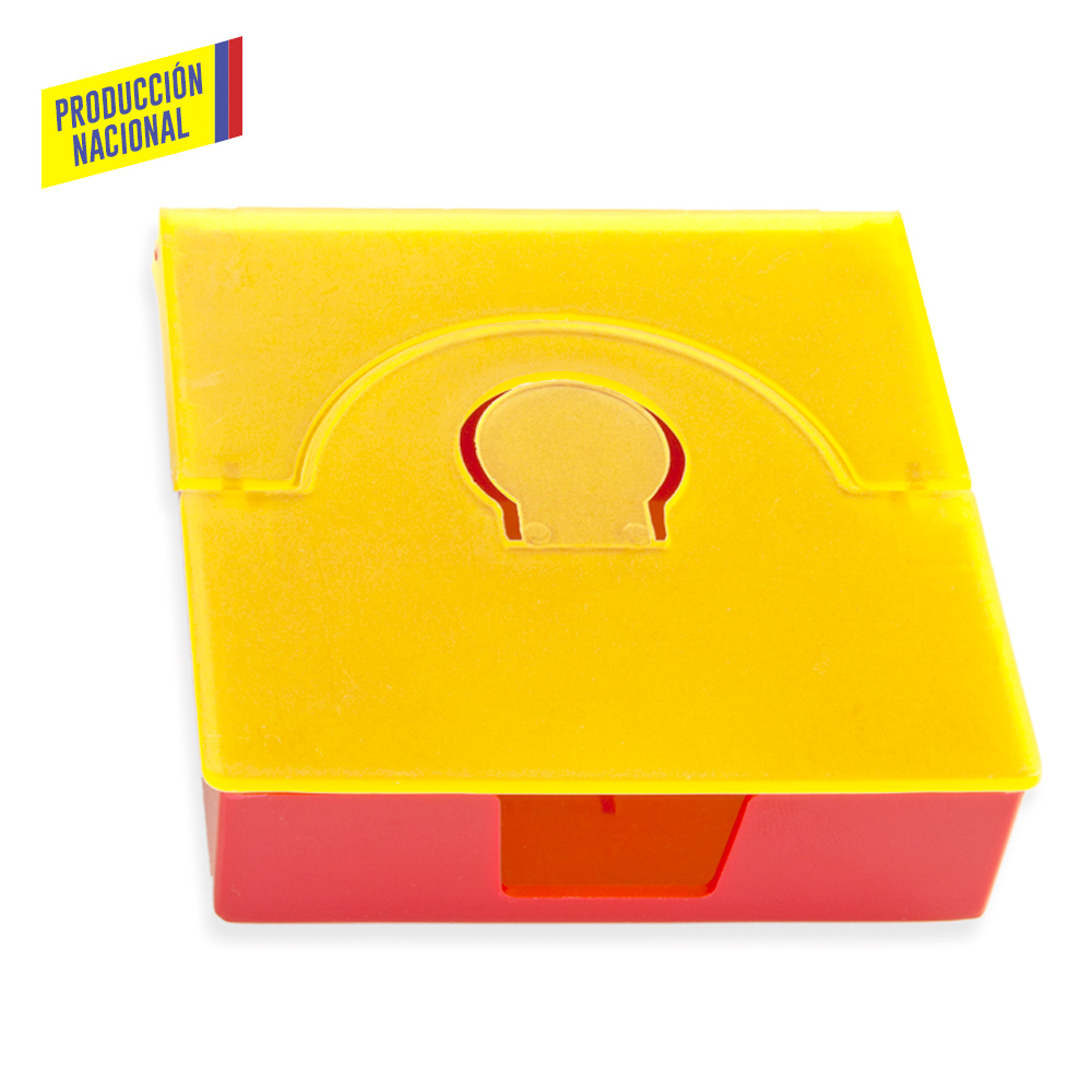 Caja plastica para taco de papel de aprox 220 hojas con tapa Con funcion portatarjetas al desplegar