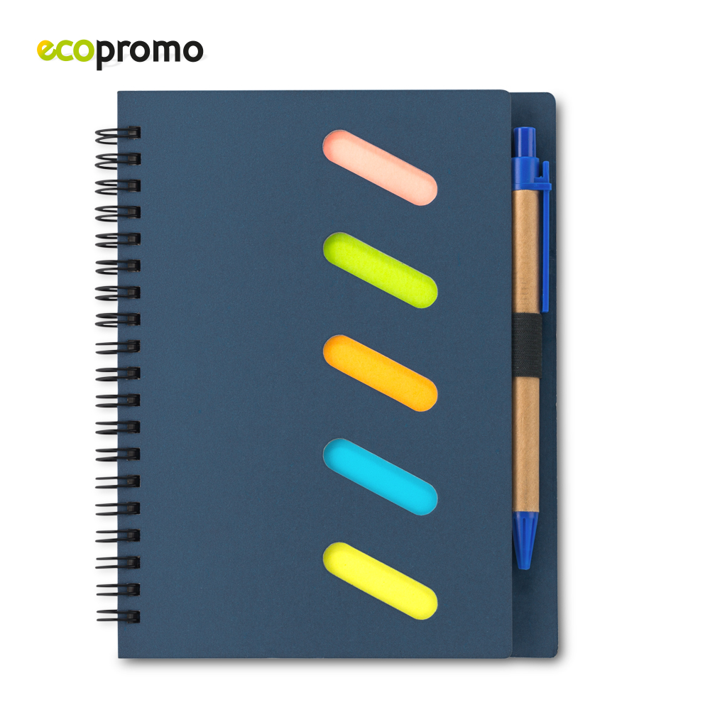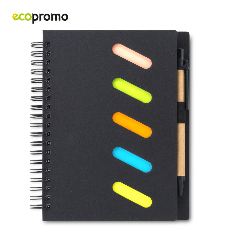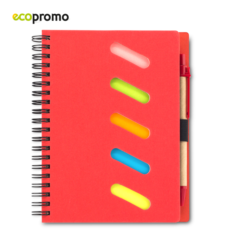 Libreta doble argolla y boligrafo de carton 50 hojas Cinco stickies de colores - 20 hojas cada uno