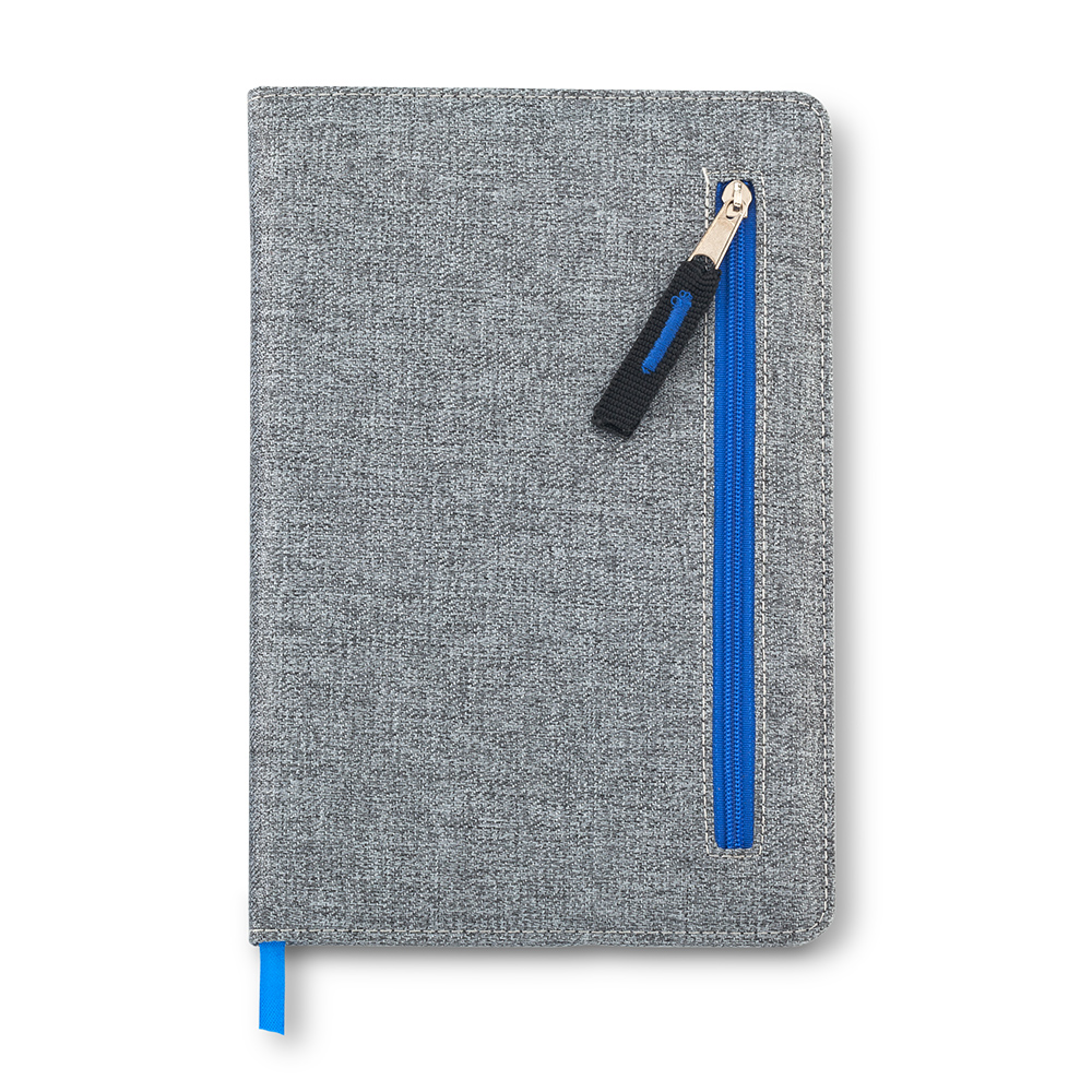 Cubierta en tela y bolsillo frontal con cremallera 80 hojas con rayas