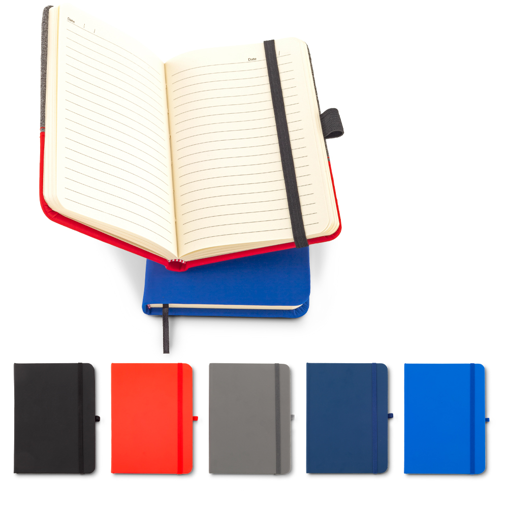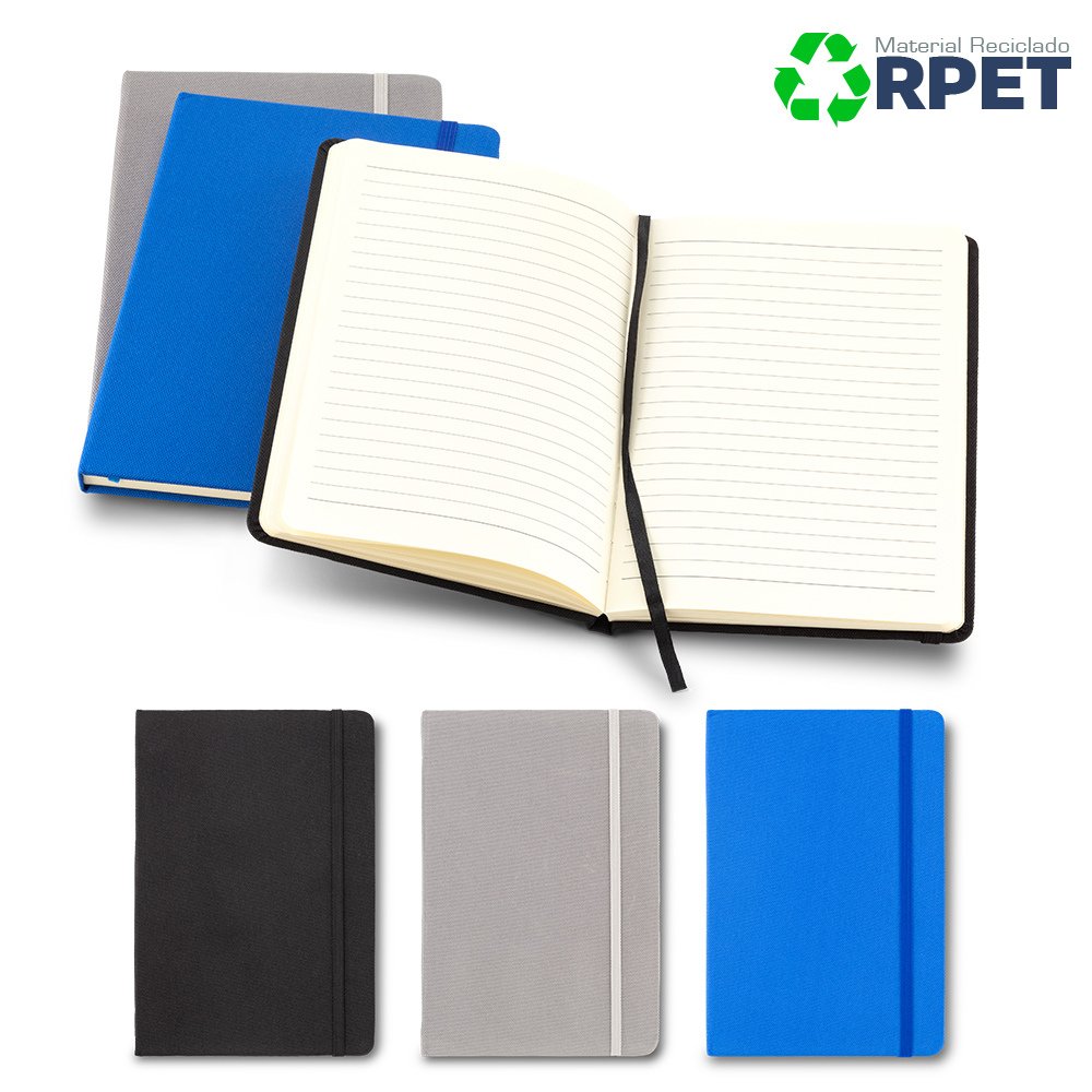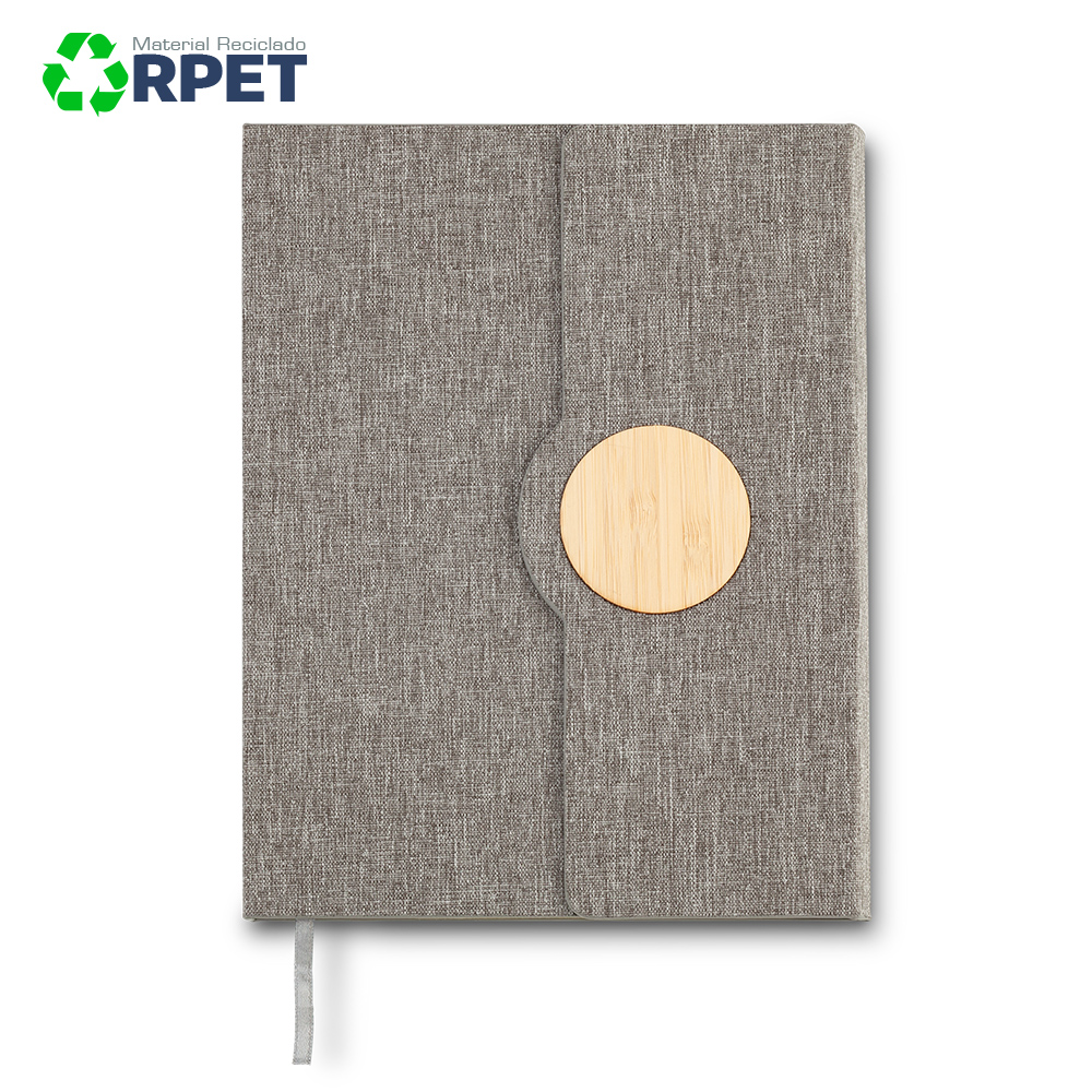 Libreta con tapa dura en RPET tamano A5 con adorno de bambu 80 hojas interiores rayadas de 70 g/m²
