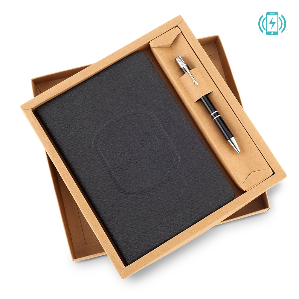 CARGADOR INALAMBRICO CON LIBRETA Y BOLIGRAFO