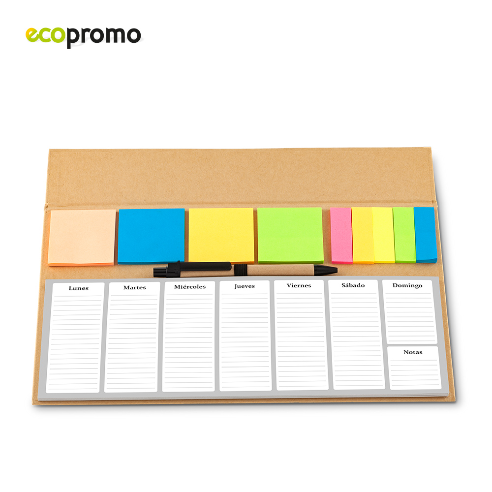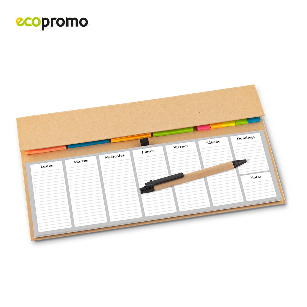 Planeador con tapa dura 52 hojas Incluye boligrafo y juego de 9 stickies de colores