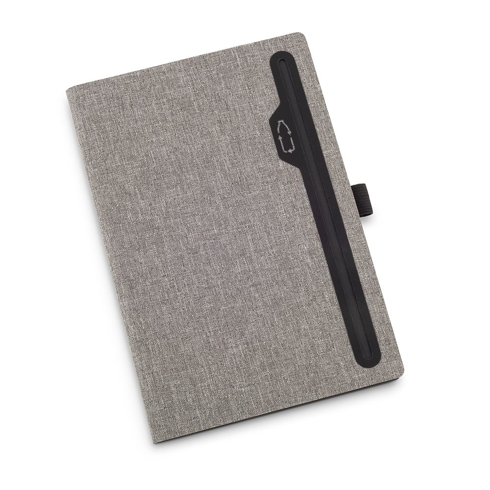 Libreta en poliéster reciclado RPET, con bolsillo exterior sin cierre. 80 hojas rayadas color crema.