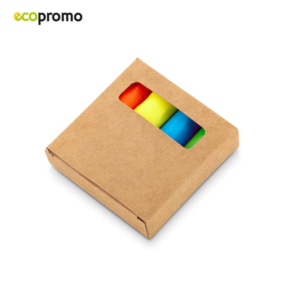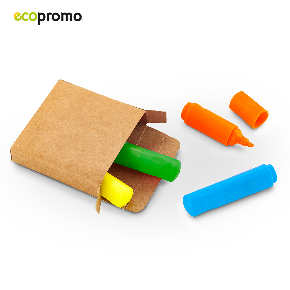 Set de cuatro mini resaltadores de tinta. Empaque caja individual en cartón.