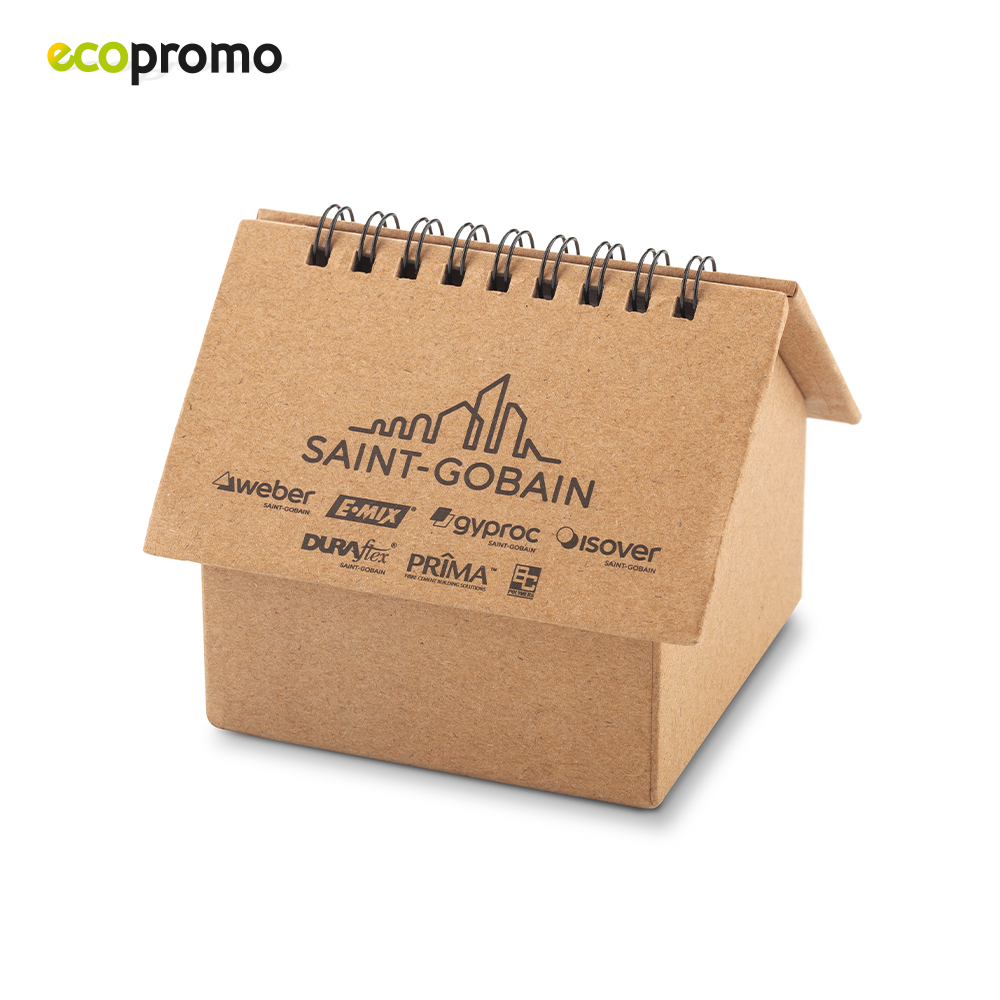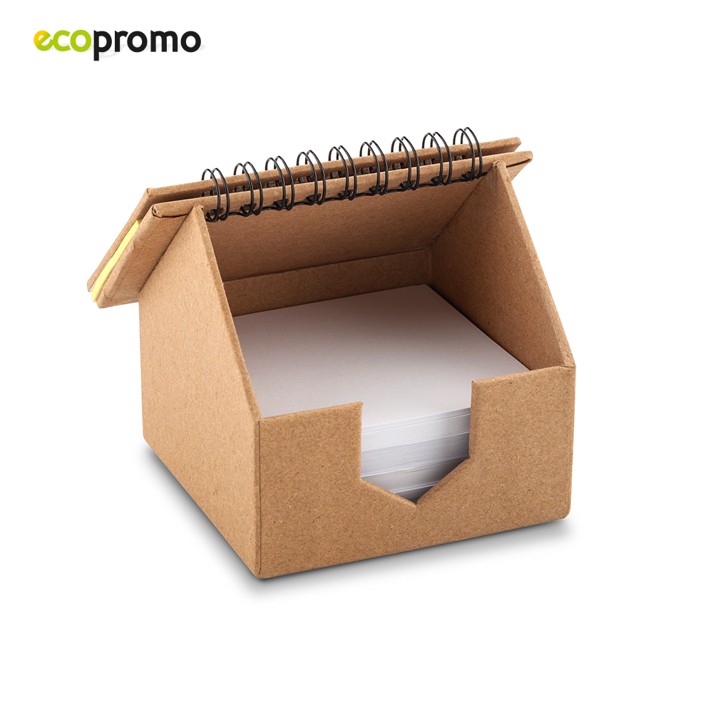 Casa en cartón la cuál funciona como base para 6 stickies de colores y taco de hojas sin rayas.