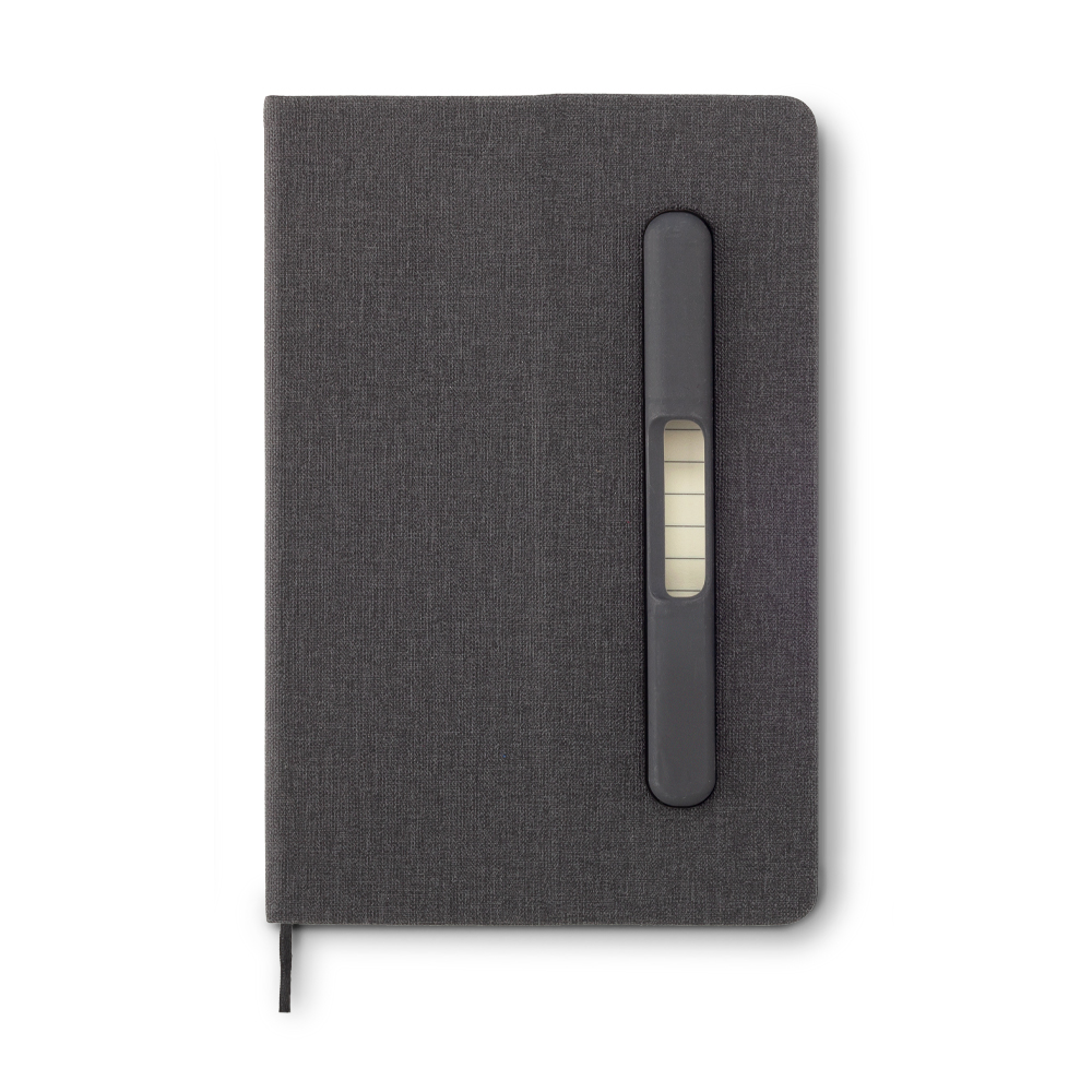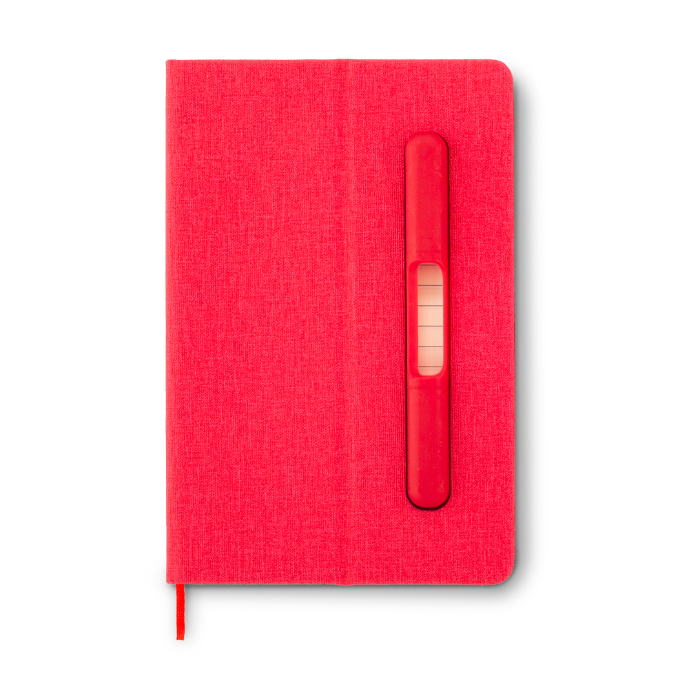 Libreta Astralis RPET OF-682 Libreta en RPET reciclado. 100 hojas rayadas y compartimiento en plástico para un bolígrafo.