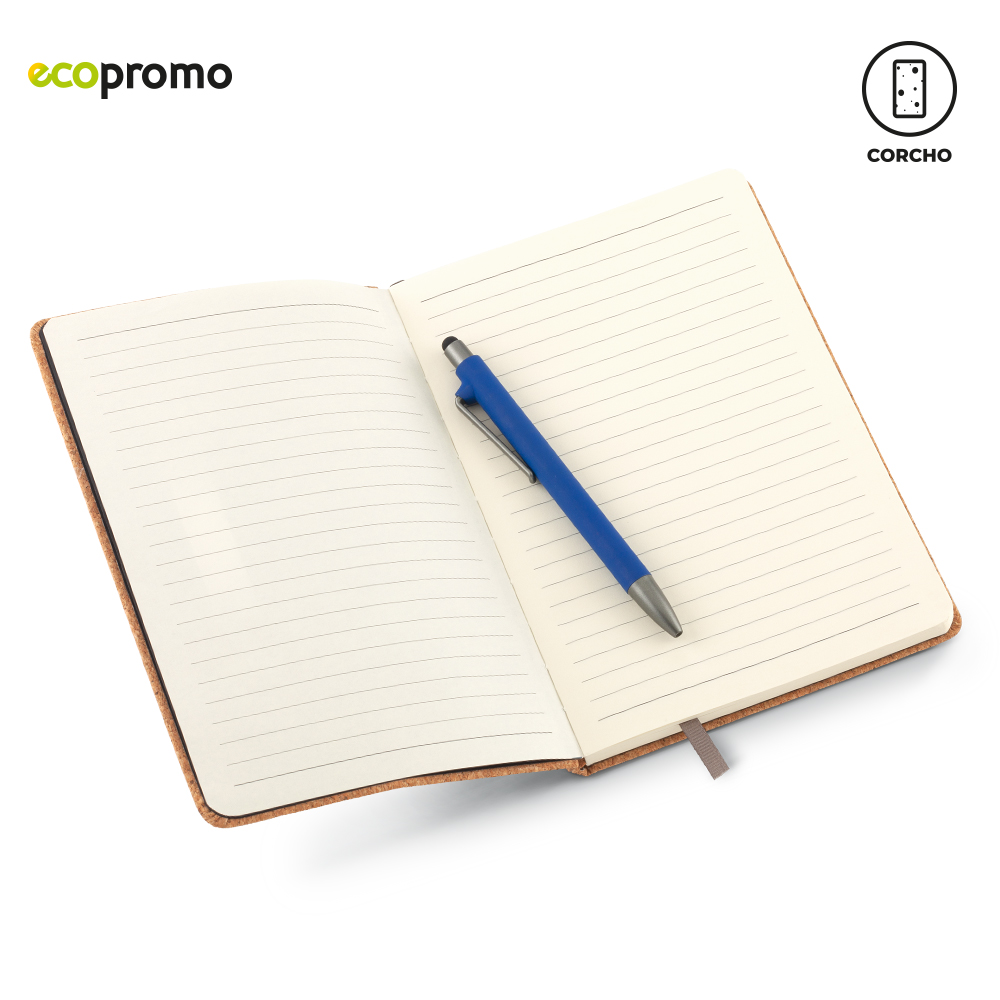 Libreta en corcho con estuche para bolígrafo y soporte para celular. 100 horas rayadas.