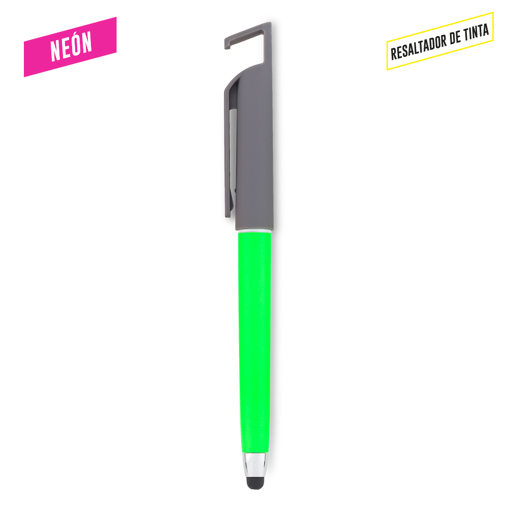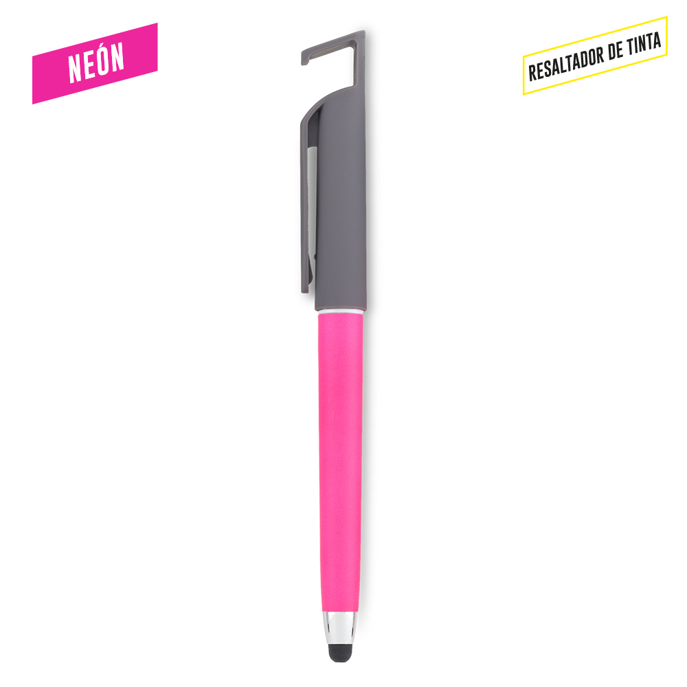 Boligrafo plastico con stylus resaltador de tinta y portacelular