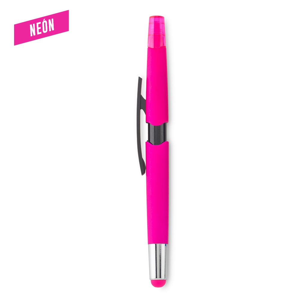 Boligrafo plastico Stylus en la punta y mecanismo push Resaltador de tinta