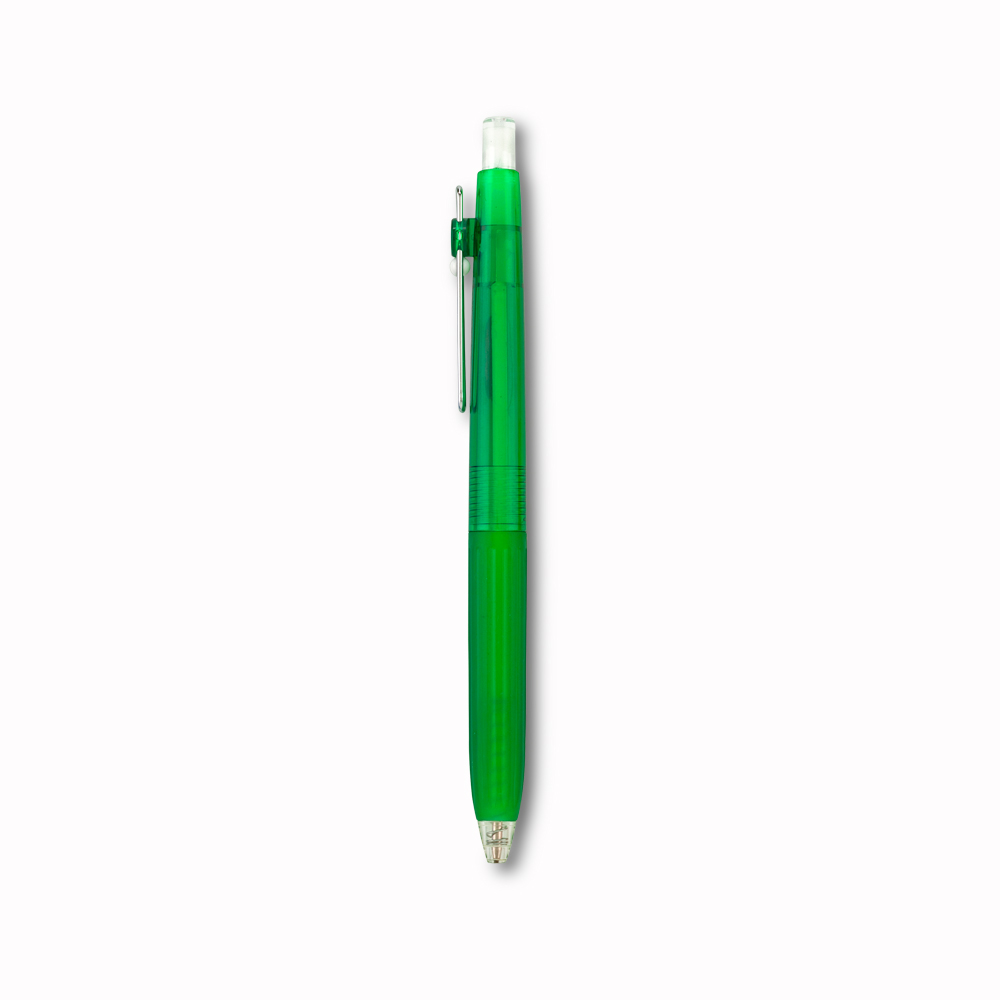 Bolígrafo plástico con grip en silicona y clip metálico. Mecanismo push.