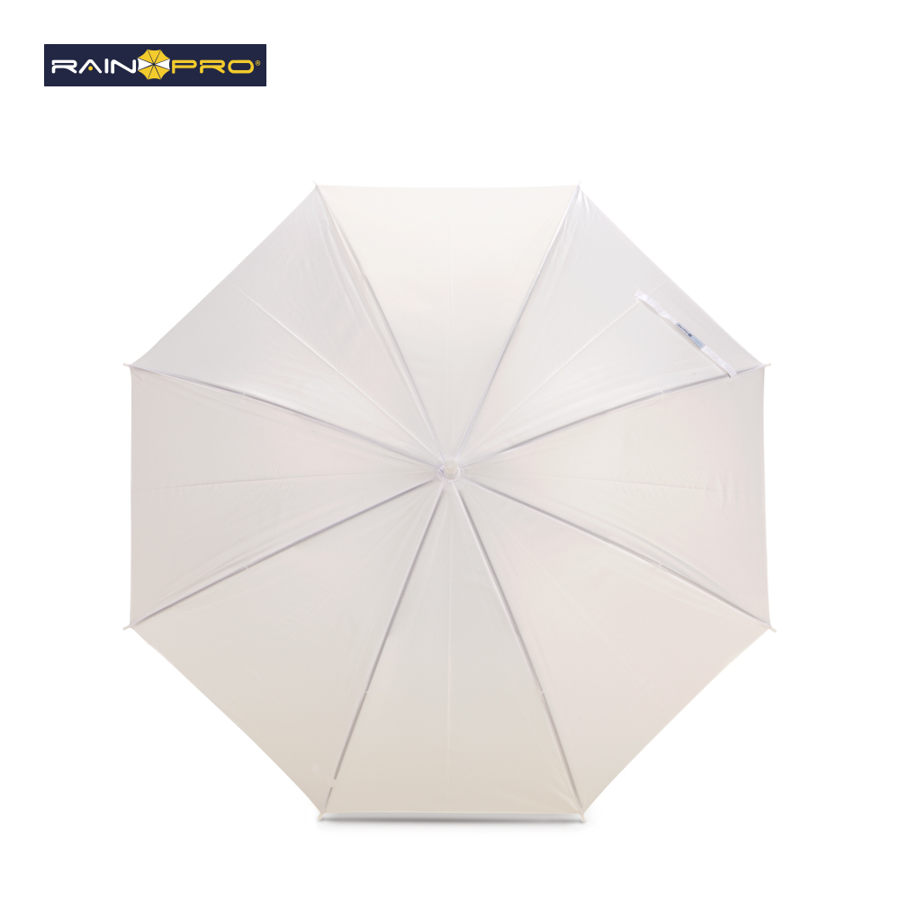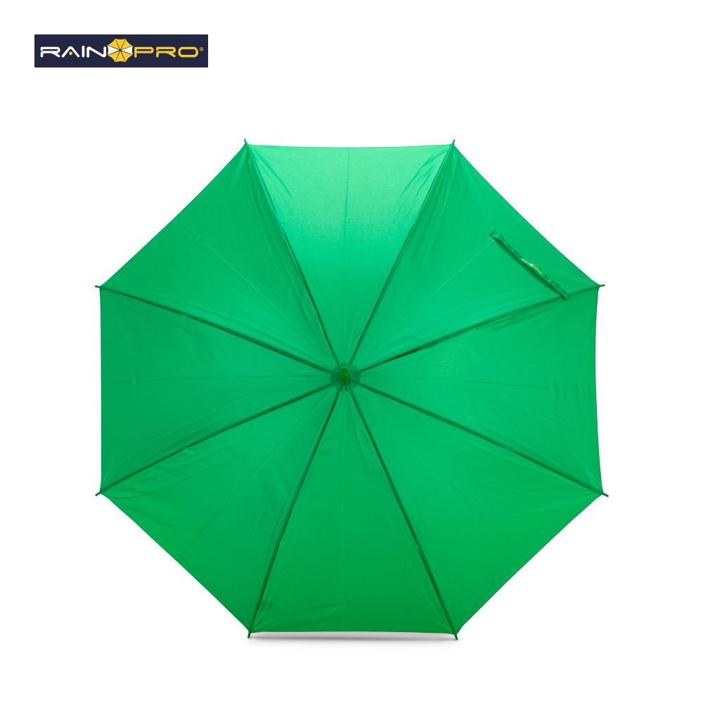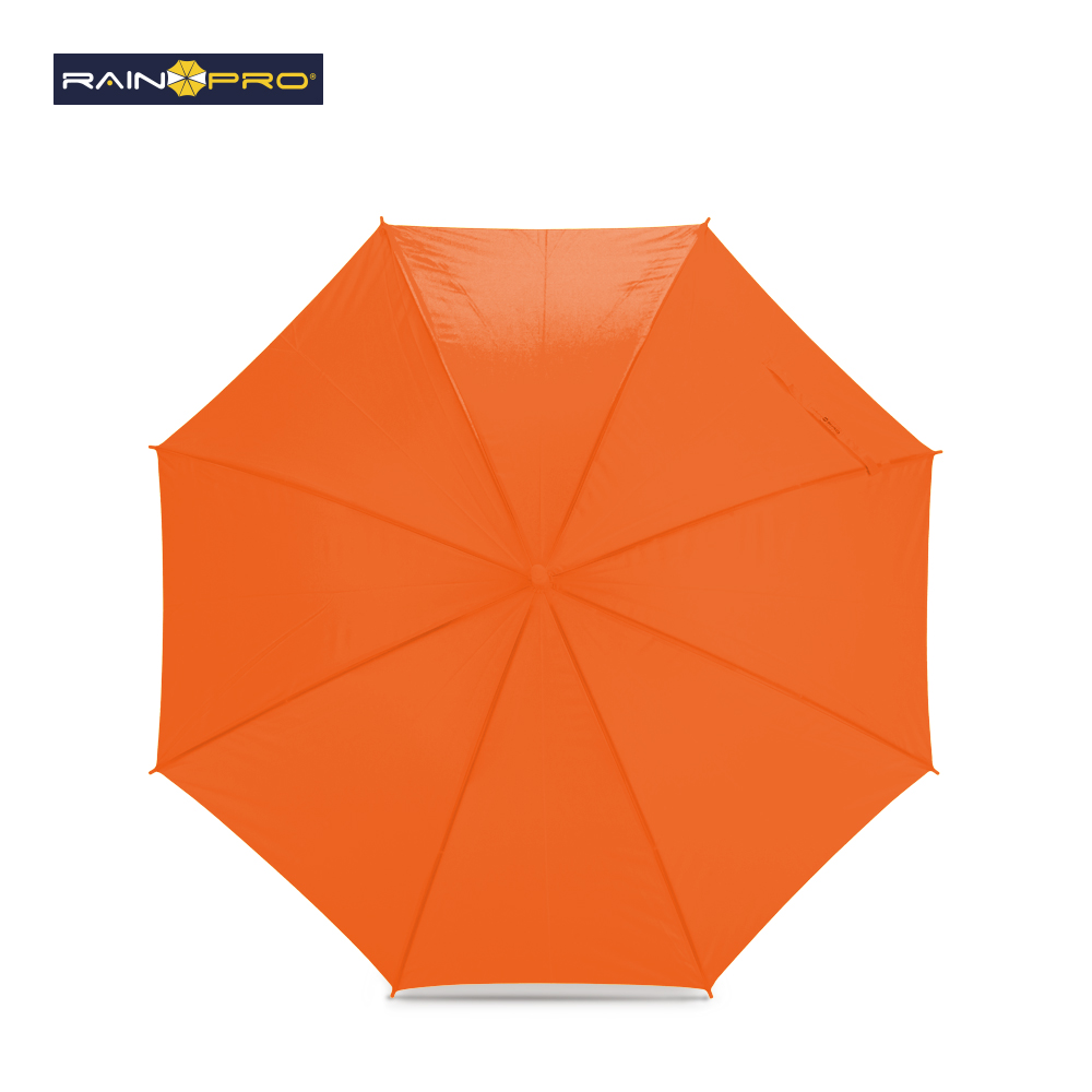 Poliéster pongee. Apertura automática, cierre manual. Marco metálico. Mango curvo plástico. 8 cascos.