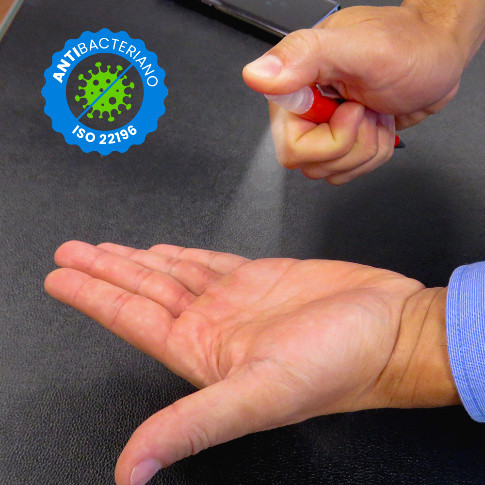 Boligrafo plastico importado con clip metalico; barril antibacteriano tratado para inhibir y prevenir el crecimiento bacteriano sobre el cuerpo del boligrafo gracias a la tecnologia nano silver un tratamiento especial realizado con iones de plata Las bacterias al contacto con el boligrafo se repelen y reducen hasta en 99% Trabaja las 24 horas al dia y permanece libre de microbios y bacterias Material antibacteriano en cumplimiento de estandar ISO 22196: 2011 (Medicion de la actividad antibacteriana en plasticos y otras superficies no porosas )