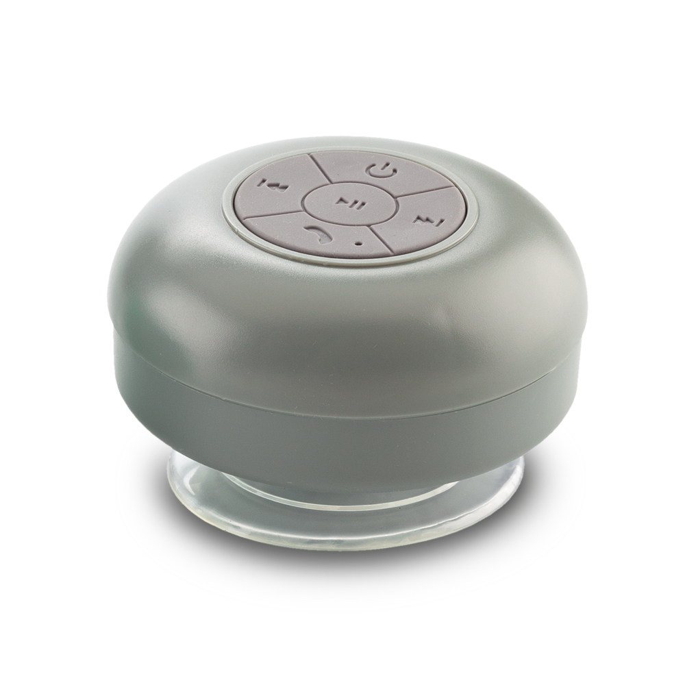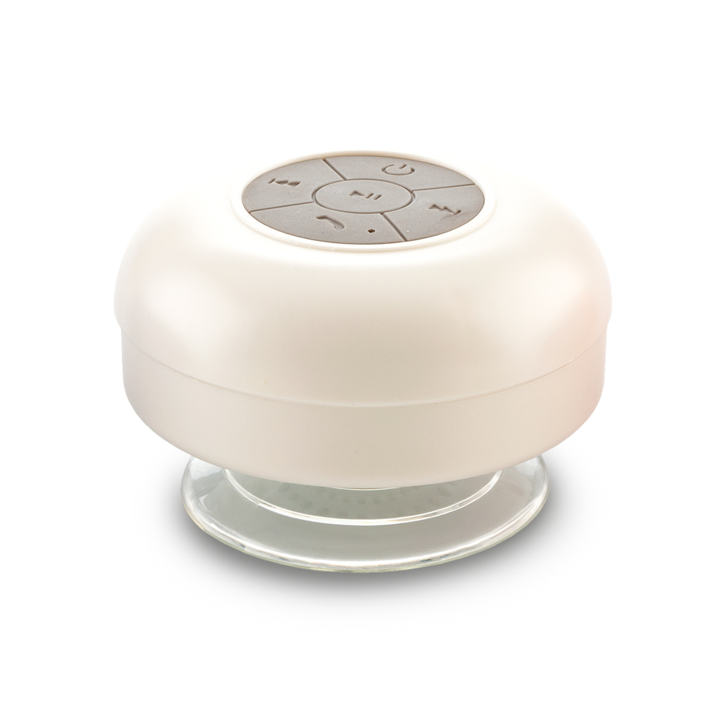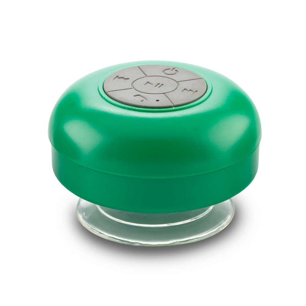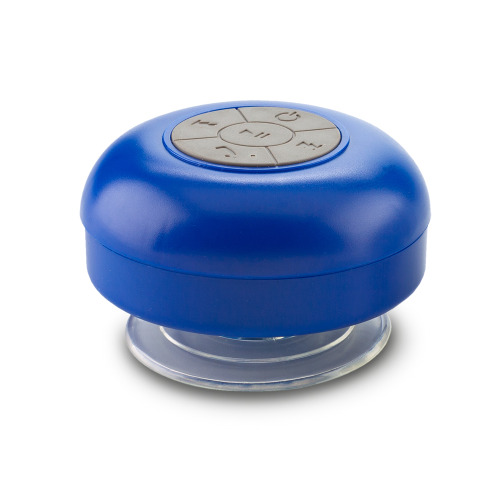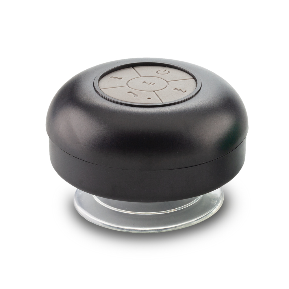 Speaker Bluetooth en plástico con chupa, resistente al agua, 3W. Tiempo de carga de 2 a 3 horas y tiempo de funcionamiento de 1.1/2 a 2 horas. Empaque caja individual.