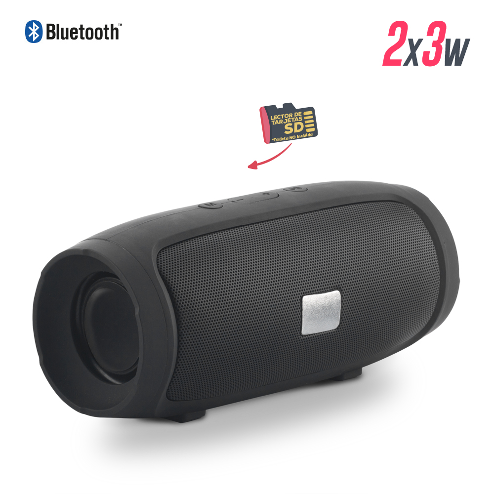 Speaker bluetooth plastico con acabado caucho 2x3W Lector de tarjeta SD y USB (no incluidas) Potencia de salida: 2x3 W Entrada: 5 V / 0 5 A Bateria: 1200 mAh / 3 7 V Rango de frecuencia: 70Hz-18 KHz Incluye placa metalica para marca Empaque caja individual