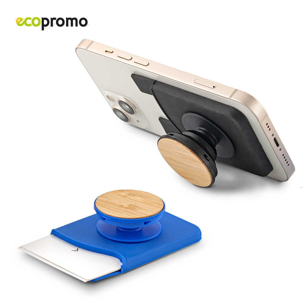 Portatarjetas adhesivo para moviles con soporte expandible en plastico y bambu adhesivo tipo 3M Funciona como soporte u organizador de cable