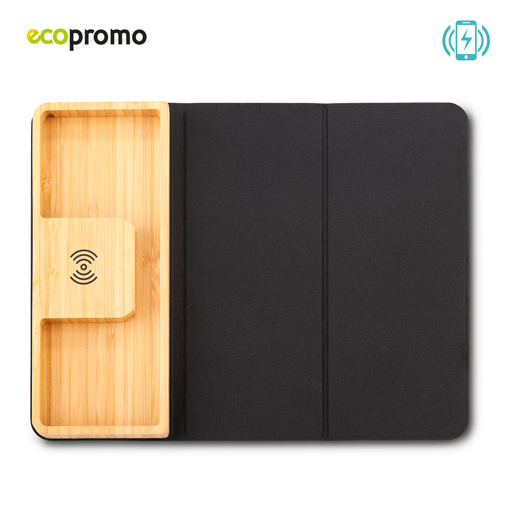 Con cargador inalambrico de 10W y organizador de elementos pequenos elaborado en bambu Empaque caja individual