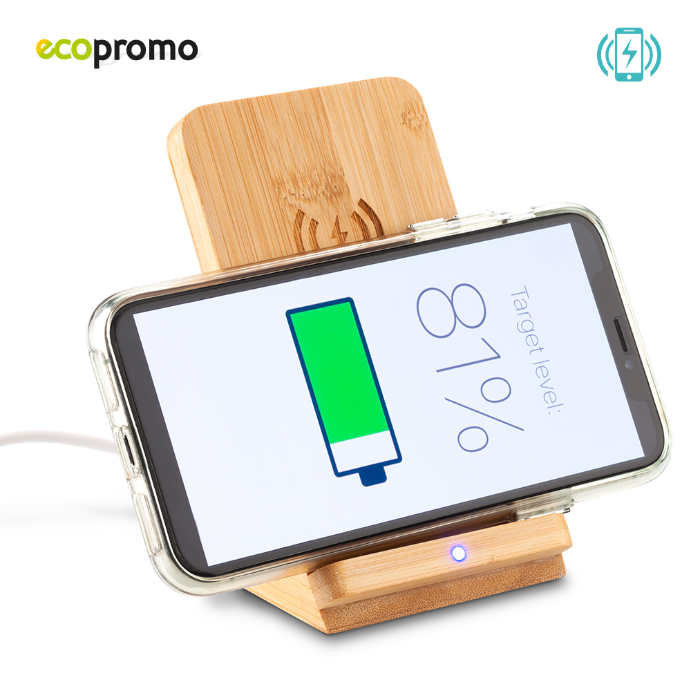 Cargador inalambrico de 5W elaborado en bambu permite carga inalambrica vertical u horizontal en los dispositivos compatibles Se sugiere su uso con dispositivos de hasta 7 pulgadas Empaque caja individual