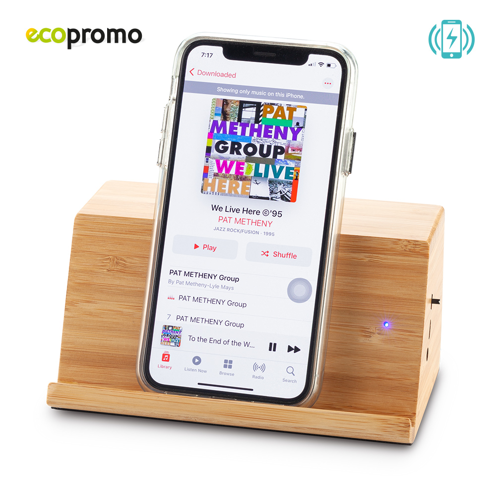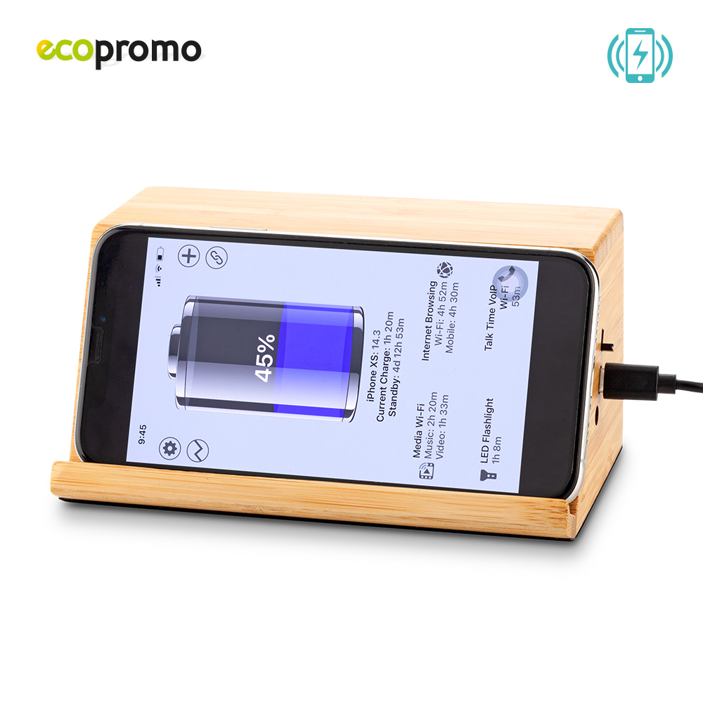 Speaker de induccion 2X3W no necesita conexion bluetooth con porta celular y cargador inalambrico de 10W incorporado Empaque caja individual
