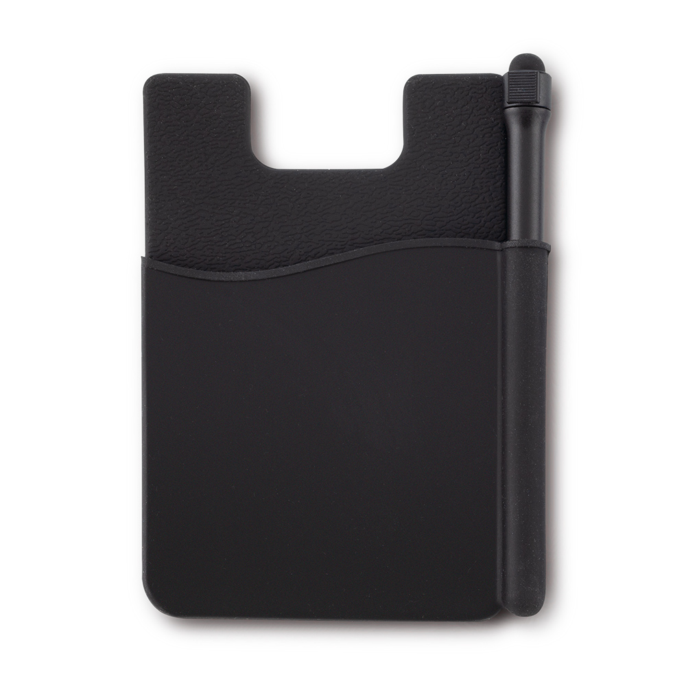 Portatarjetas adhesivo para moviles con mini boligrafo y stylus incorporado