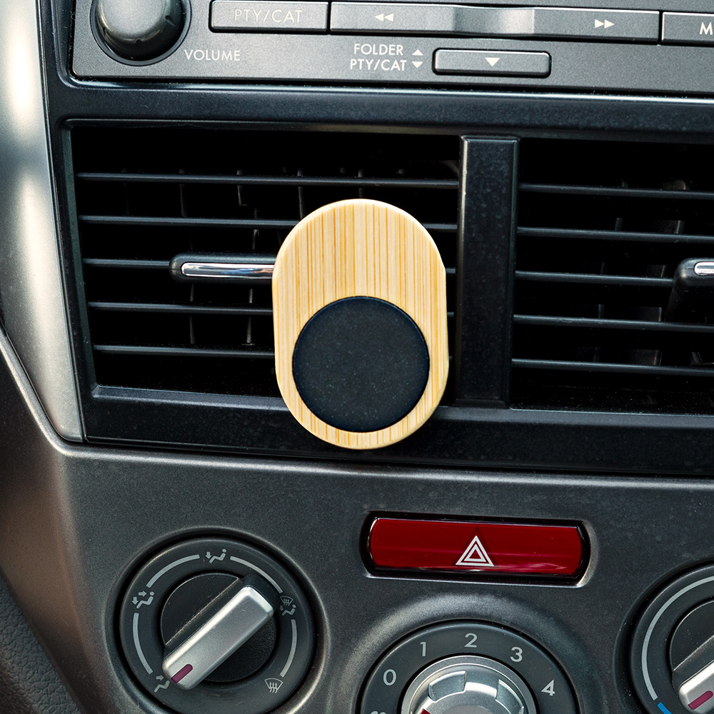 Soporte magnetico para carro en bambu con adhesivo 3M Empaque caja individual