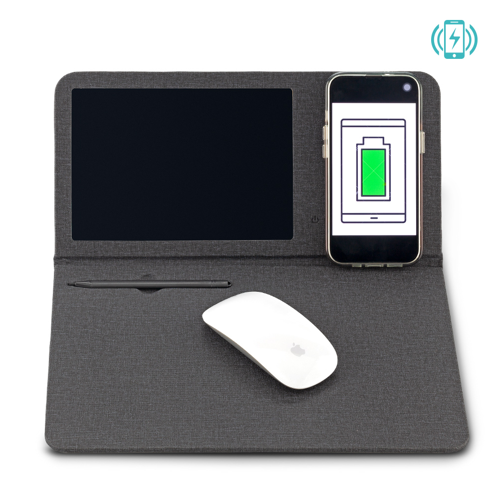 Cargador inalambrico de 15w con mouse Pad y pantalla LCD plastica tipo borrable Empaque caja individual