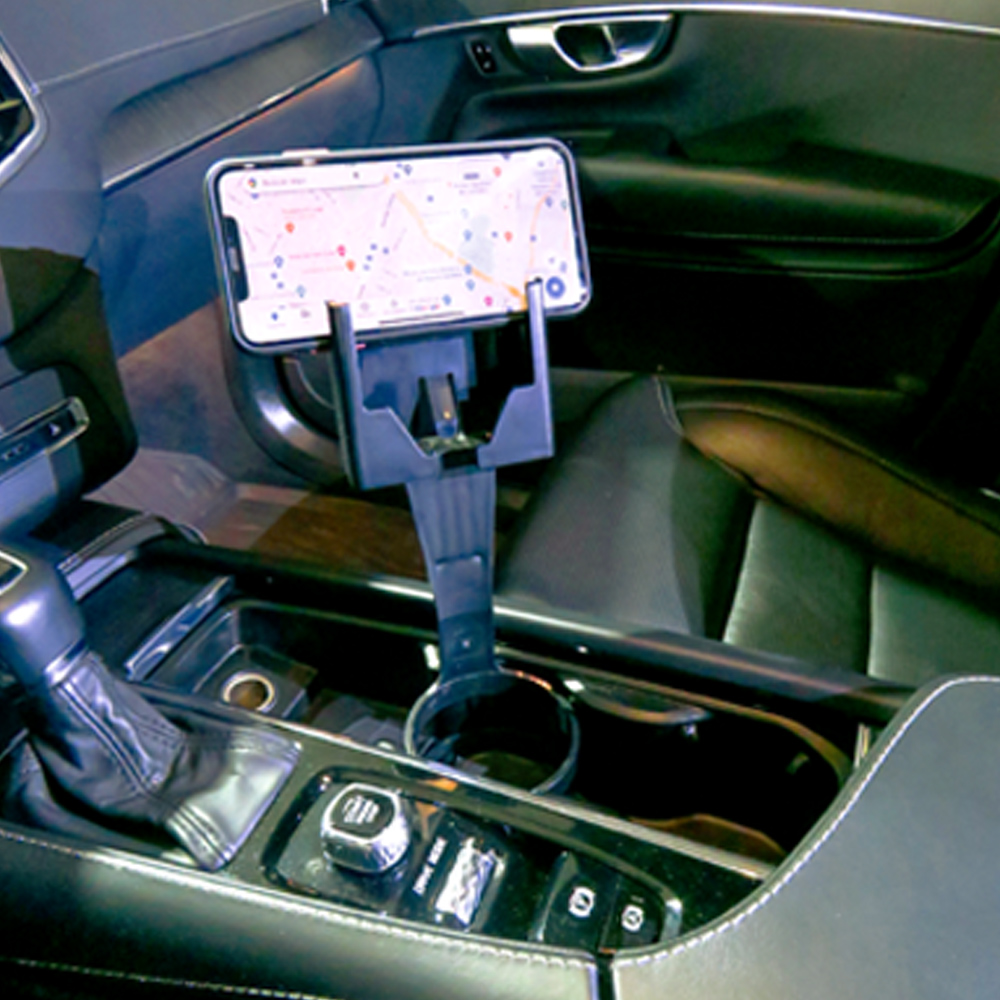 Soporte para moviles en plastico Parte inferior del soporte se fija en el portavasos del carro Empaque caja individual