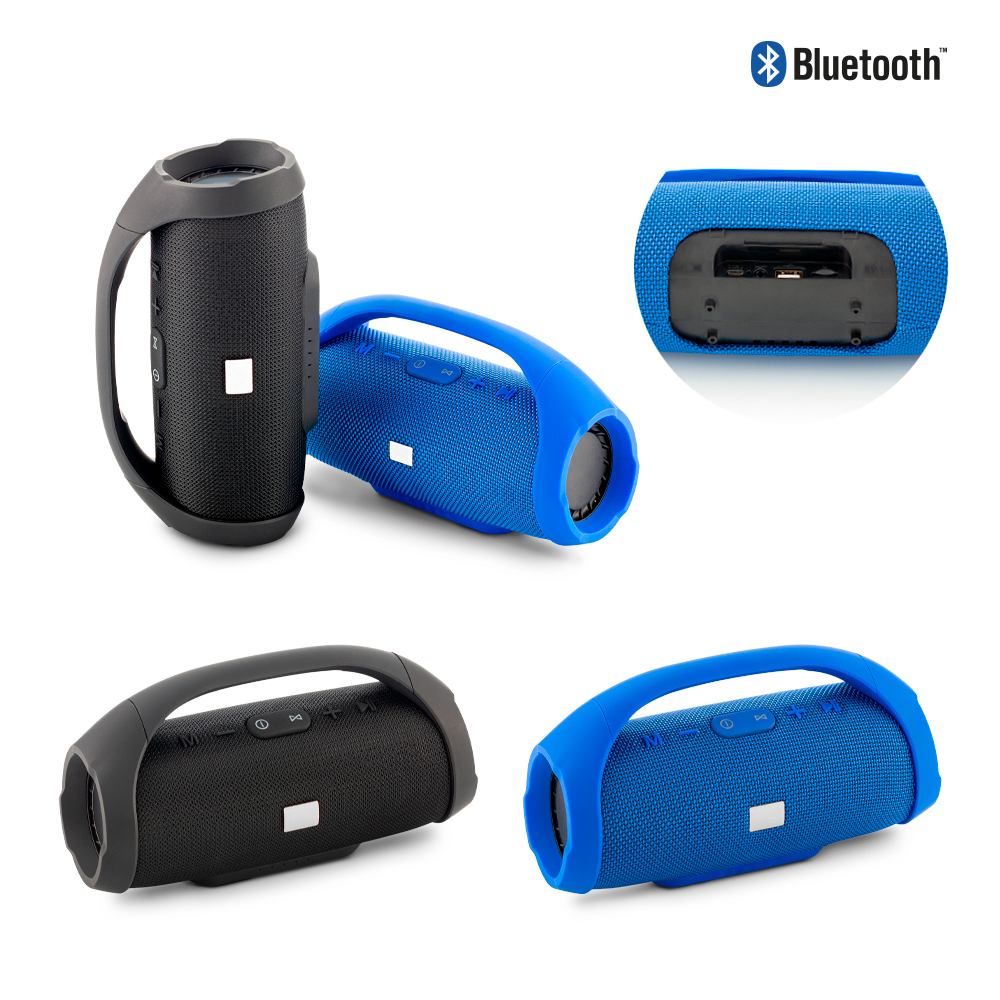 Speaker Bluetooth plástico con acabado en tela. Lector de tarjetas TF y USB. Tiempo de carga 3-4 horas. Tiempo de reproducción 3-4 horas. Potencia de salida: 5W*2. Máxima rango de conexión: 10 mts. Batería: 1500 mAh. Con luz LED que cambia de colores. Empaque caja individual.