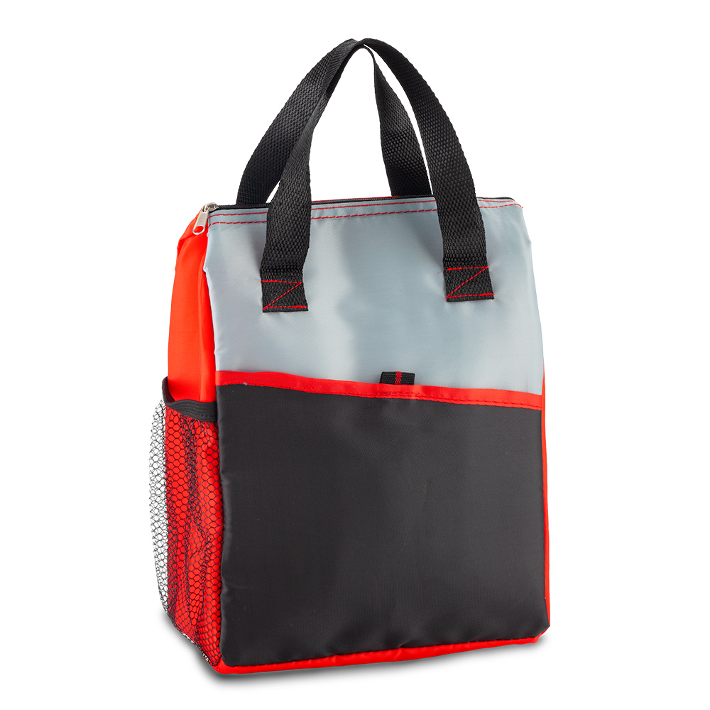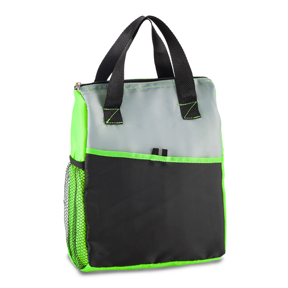 En poliester con interior en PVC bolsillo exterior y malla lateral
