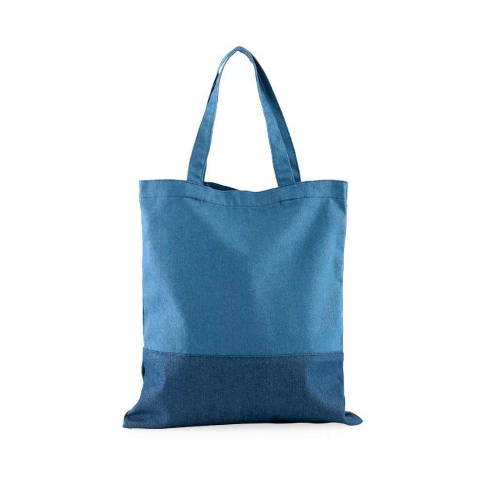 Bolsa en denim (jean) reciclado con agarraderas. Medidas: 41.3 cm x 35 cm.